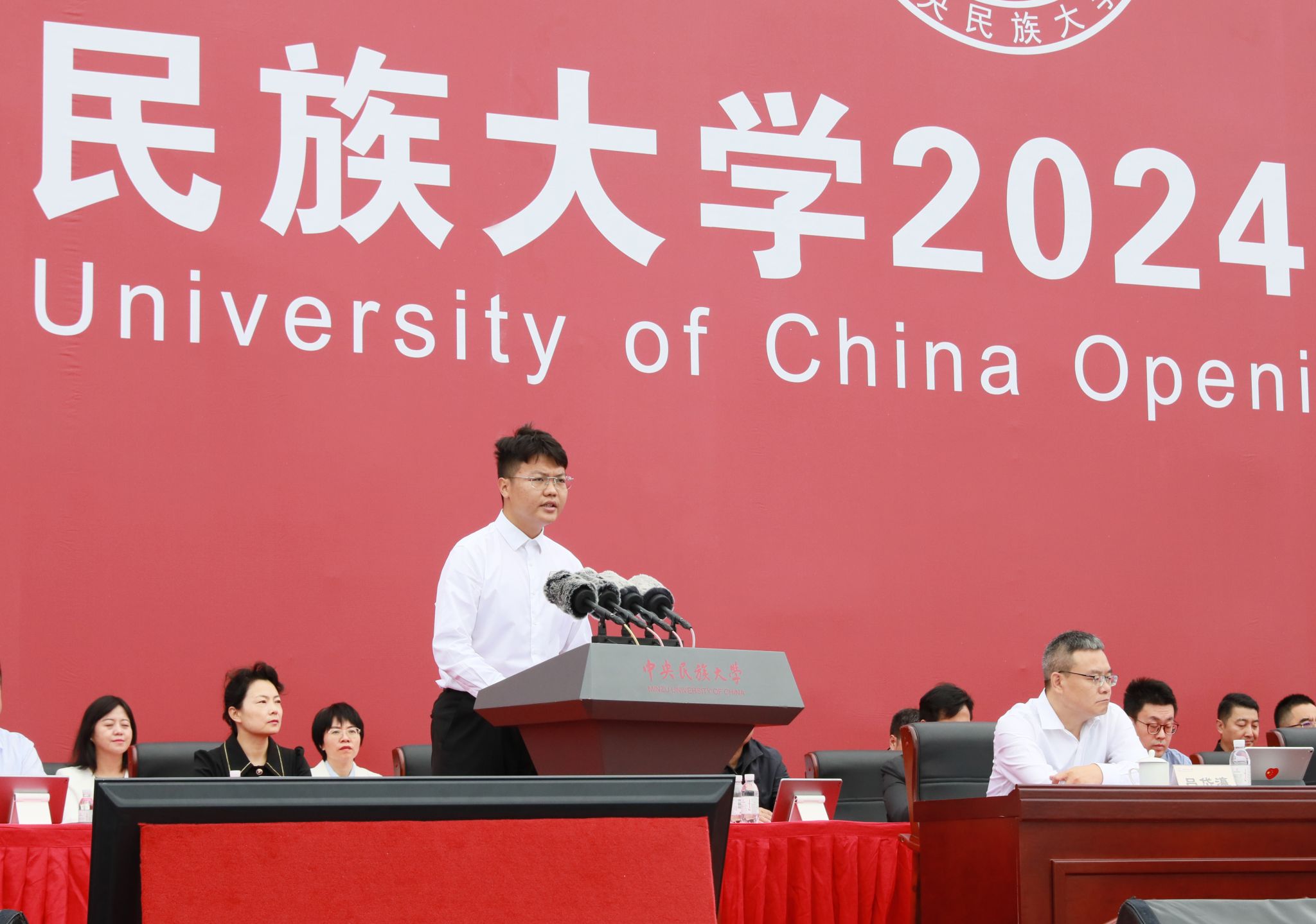 查显友首先代表学校向来自全国各地和全球34个国家和地区的全体新生表示热烈欢迎,并向辛勤培育他们的父母和老师表示衷心感谢。他在回顾学校70余年光辉历程中指出,中央民大是中国共产党创办民族高等教育的成功典范,是服务党和国家民族工作和民族理论政策创新的学术重镇,是党和国家宣传展示中华民族大团结的模范窗口,是铸牢中华民族共同体意识的重要阵地,是为党和国家培养各民族优秀人才的红色摇篮。