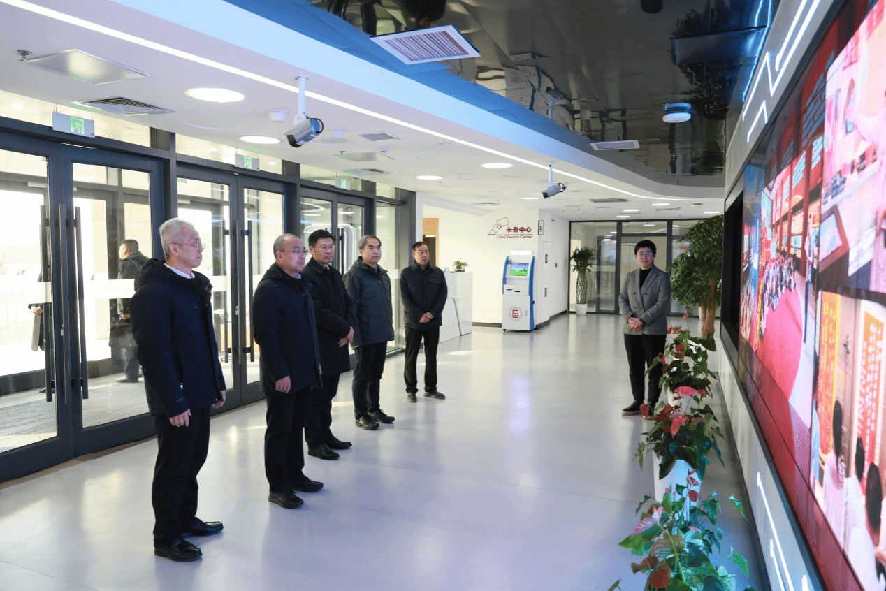在智慧中心,于英杰一行听取了学校育人实践成果、智慧校园、平安校园汇报,观看了学生校园文化活动展示。