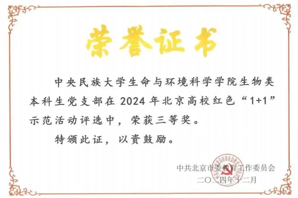 新闻网讯 为推动思政小课堂和社会大课堂有机融合,开创新时代思政教育新局面,学校持续积极组织开展红色“1+1”党支部共建活动。在市委教育工委组织的2024年北京高校红色“1+1”示范活动评选展示交流活动中,经学校推荐、材料审核、专家评审、现场展示等环节,学校教育学院教育硕士第三党支部、生命与环境科学学院生物类本科生党支部荣获三等奖。今天让我们来认识生命与环境科学学院生物类本科生党支部吧!
