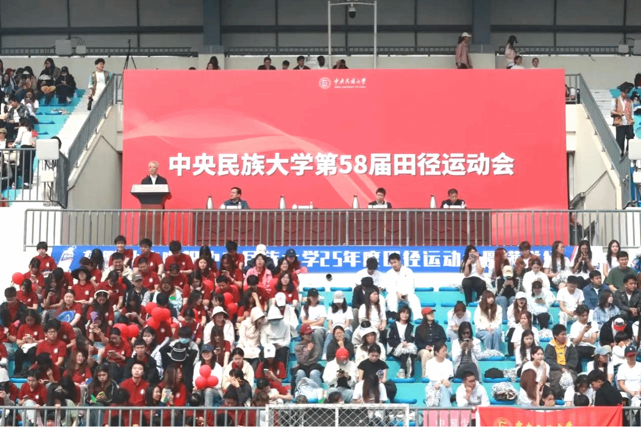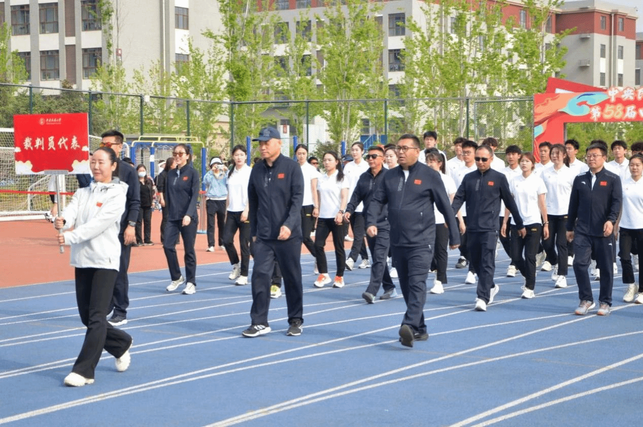 本届运动会主题为“青春飞扬 融聚民大 智创未来”。开幕式前,数百名学子在《我的祖国》音乐中演绎二十四式太极拳,动作整齐划一、刚柔并济。开幕式上,国旗队、校旗队、红旗队、裁判员方队、各学院运动员代表方队、教职工代表方队等依次入场。他们精神抖擞,迈着矫健的步伐,伴着嘹亮的口号,以昂扬奋进的姿态列队经过主席台,展现出蓬勃向上的精神风貌。