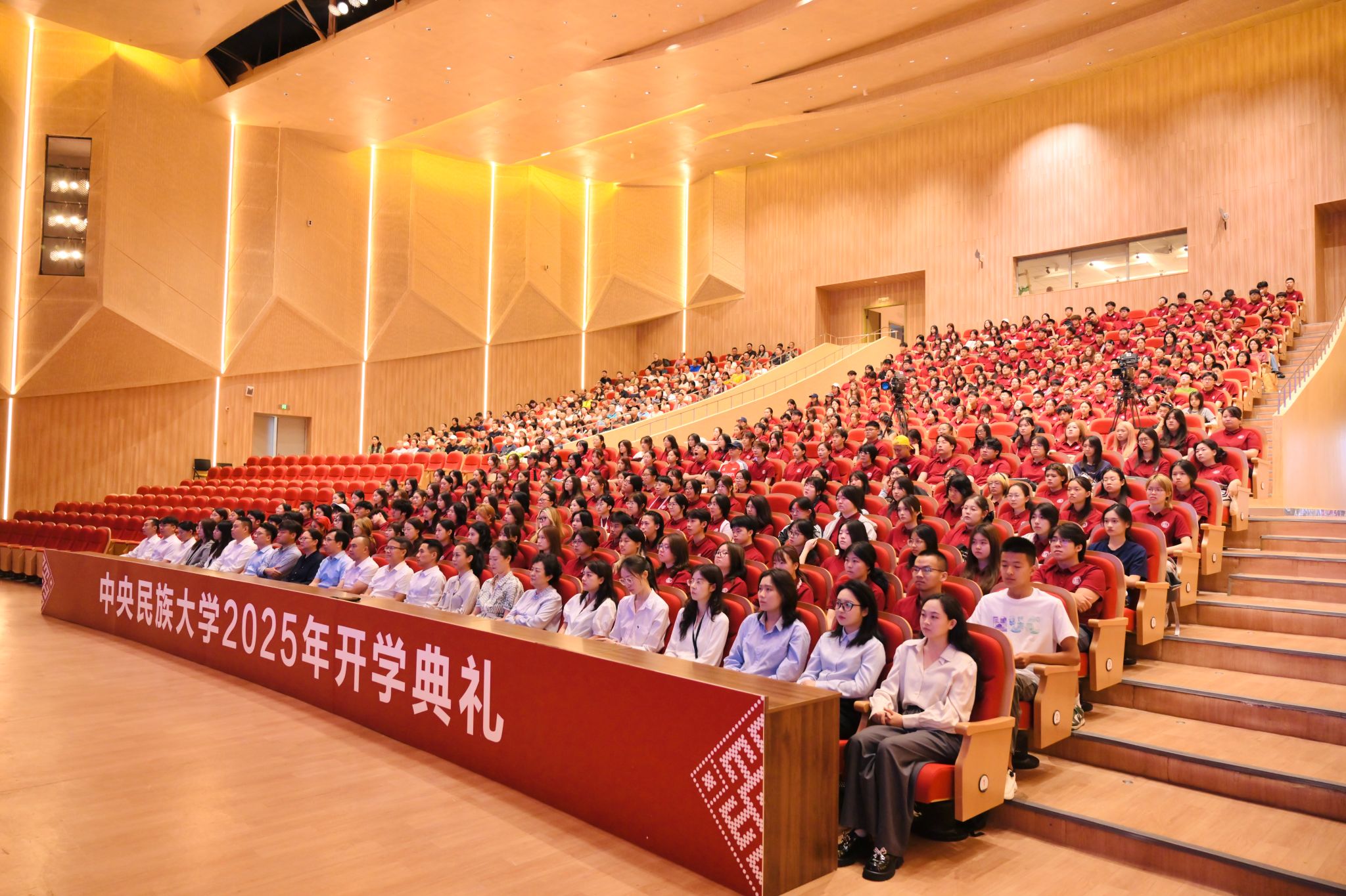 本科生新生代表、新闻与传播学院阿旺曲珍以收到录取通知书时家乡的欢庆为引,感恩党和国家为边疆民族地区学子铺就求学坦途。她向全体新同学发出邀约,勇担使命、求真创新、包容共美,用专业所学讲好中华民族共同体故事,以“强国有我”的青春誓言回应时代厚望。