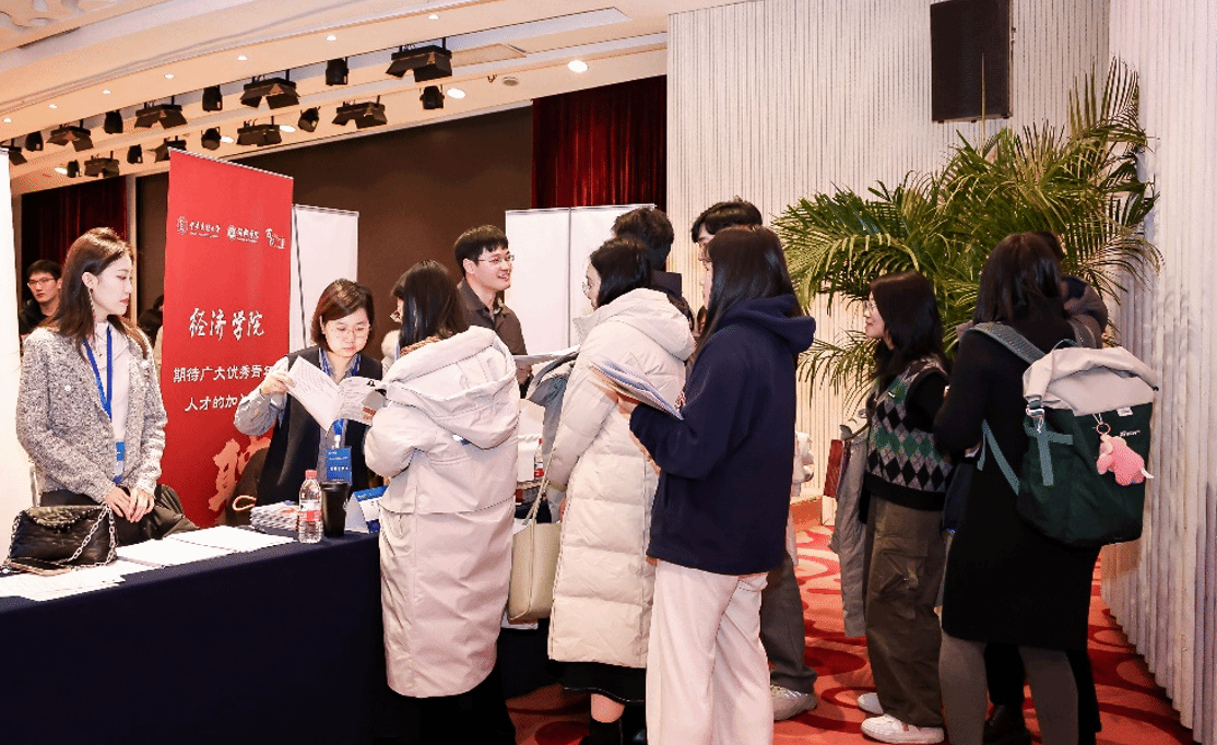 经济学院副院长时保国、数字经济系主任李成明参加论坛环节,学院办公室相关负责人员及新进教师参加“百所经院人才招聘会”,并向海内外博士后、博士研究生详细介绍了学校相关政策和学院基本情况。