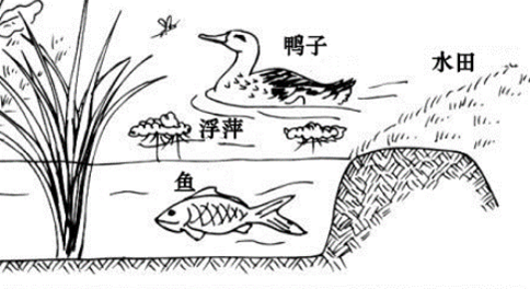 稻萍鱼鸭复合系统示意图