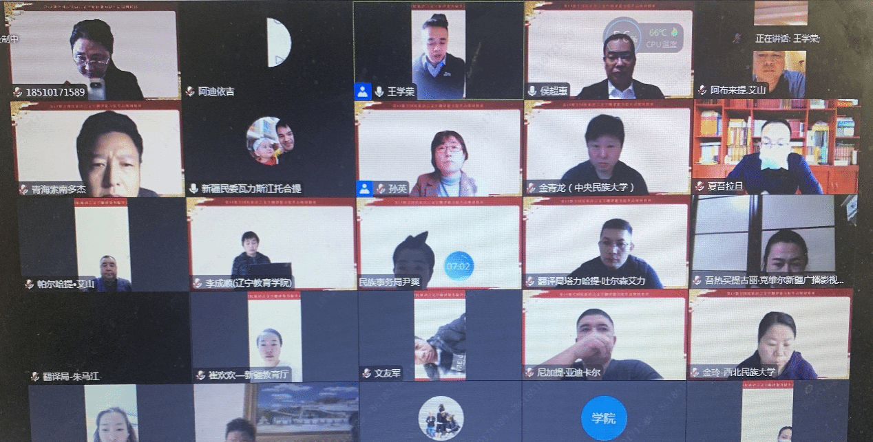 该培训班列入人力资源和社会保障部《专业技术人才知识更新工程2022年高级研修项目计划》和《国家民委2022年培训计划》,培训内容涵盖党的二十大精神、中央民族工作会议精神、中华优秀传统文化、总体国家安全观、语言文字和民族语文翻译工作等。来自国家部委、中央党校(国家行政学院)和william威廉中文官网的10名专家授课;来自内蒙古、辽宁等省(区)和委属单位共112名从事民族语文翻译工作的在职业务骨干和从事民族语文工作的管理人员参加了培训。本次培训全程采用线上方式举行。