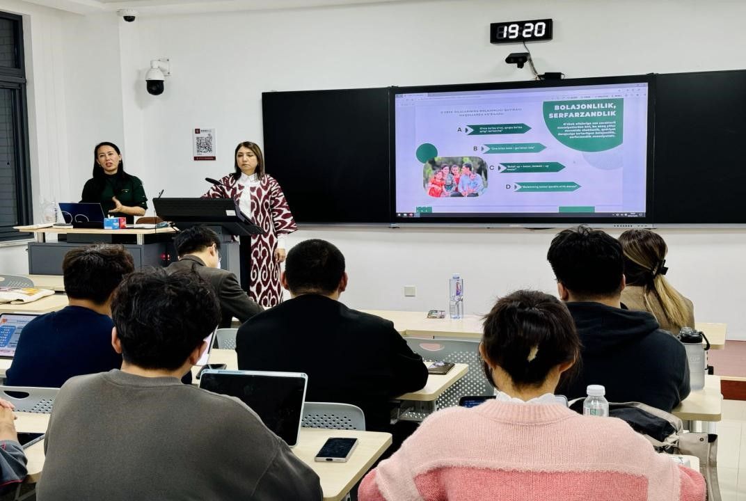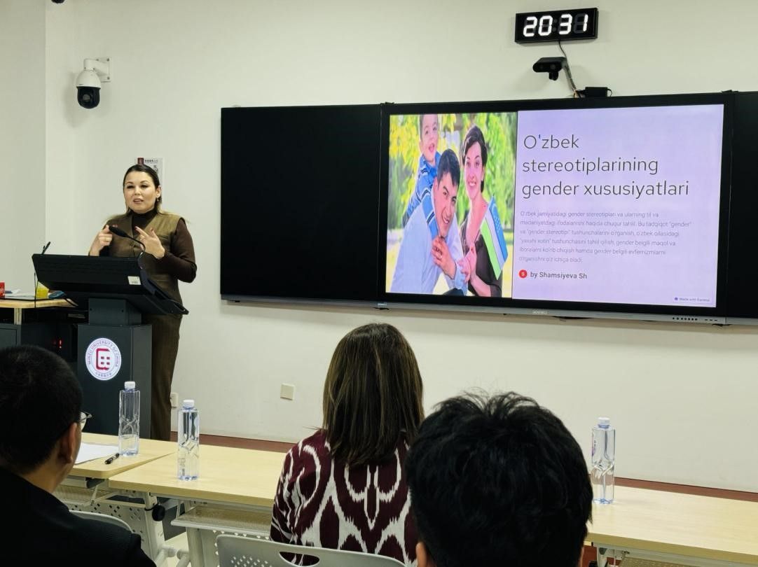 乌斯马诺娃·沙依拉向同学们介绍了乌兹别克斯坦文化的定型印象,中国人眼中的乌兹别克文化印象。她首先为大家解释了“定型”这一专业术语的概念,之后从不同文化角度讲解了乌兹别克斯坦文化定型特点,用生动的例子呈现了乌兹别克斯坦文化中的民族观念、传统习俗及其变化。