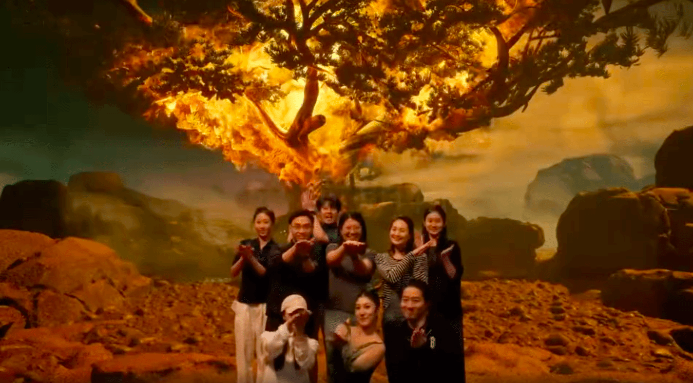 本次合作的作品《神树与金乌》以中国古典舞为核心语言,将hecoos XR虚拟技术作为核心引擎,借助XR虚拟拍摄技术,将数字科技与传统舞蹈表演深度融合,突破传统舞台边界,构建虚实交织的东方神话世界,创造出一部充满未来感的数字舞蹈影像作品。在虚拟与现实交织的舞台上,舞者的每一个动作都通过XR技术实时捕捉、动态渲染,突破物理空间的限制,让舞蹈在数字世界中无限延伸。