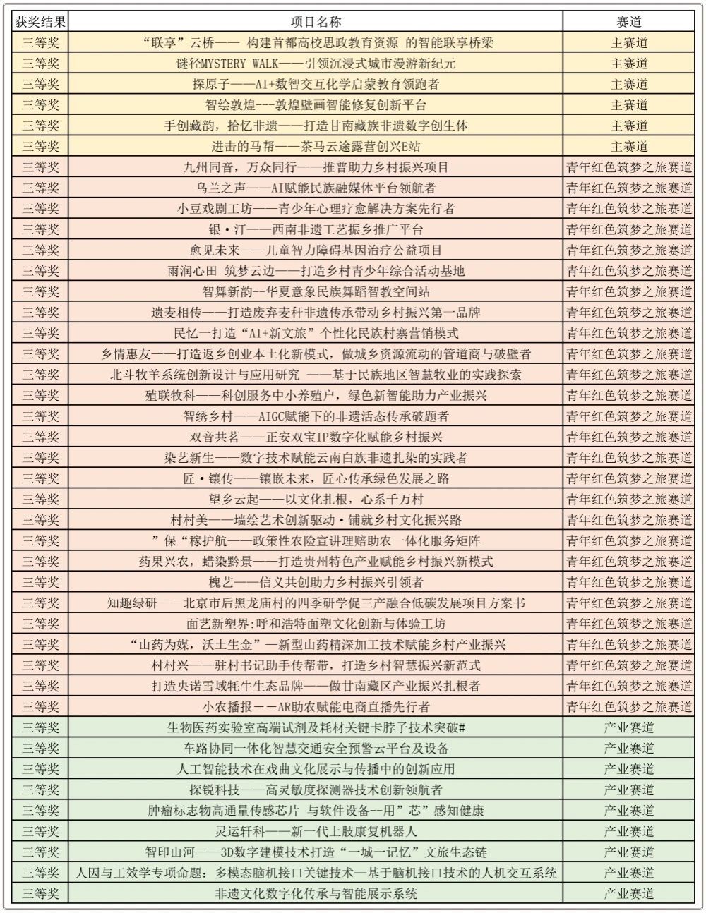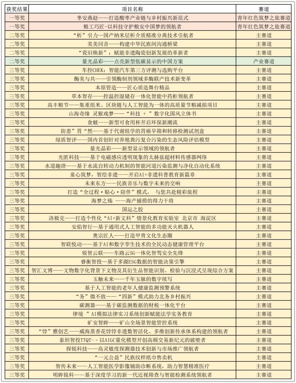 新闻网讯 日前,中国国际大学生创新大赛(2025)北京赛区复赛获奖名单公布,我校合计84个项目从北京市21774个项目中脱颖而出,高教主赛道获奖45项、“青年红色筑梦之旅”赛道获奖29项、产业赛道获奖10项;其中一等奖2项、二等奖4项、三等奖78项;学校再获“优秀组织校”荣誉称号,连续八年获此殊荣,我校在本届大赛中参赛项目数和获奖项目数均继续保持在北京市高校前列,充分展现了我校在创新创业教育体系建设和创新人才培养方面的进步和提升。