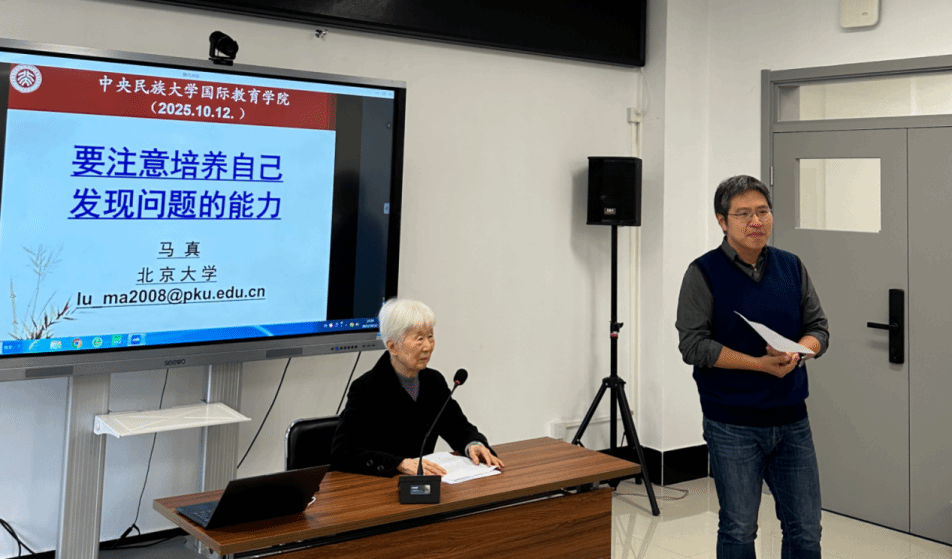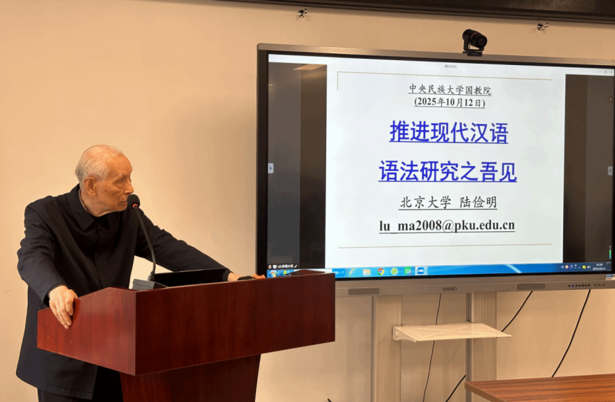 新闻网讯 10月12日,国际教育学院在海淀校区举办学术讲座,邀请著名语言学家、北京大学陆俭明先生与马真先生,分别以《推进现代汉语语法研究之吾见》和《要注意培养自己发现问题的能力》为题,围绕现代汉语研究与学术能力培养分享核心观点。本次讲座是“本科生课程思政团队建设项目”“研究生精品示范课程培育项目”“中央民大‘交叉学科协同攻关项目’”和“国家民委‘高校教学改革创新项目’”系列讲座之一。讲座由国际教育学院院长陈天序主持,娄开阳教授与谈。