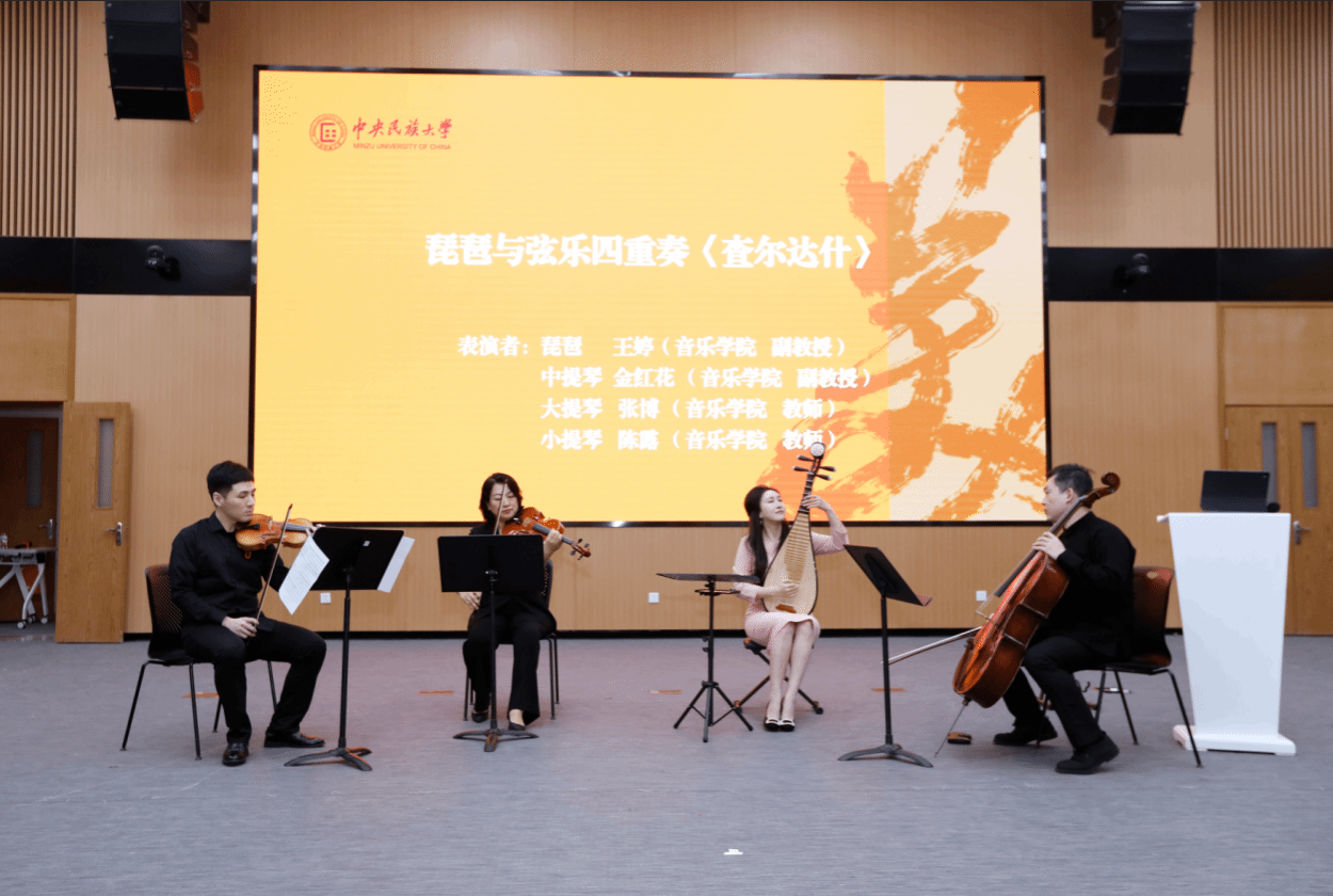 音乐学院王婷副教授汇报的《中国民族弹拨乐鉴赏与实践》课程,以古琴、琵琶、伽倻琴等多民族弹拨乐器为载体,引领学生在艺术实践中增强文化认同、坚定文化自信。现场演奏的《查尔达什》生动展现了中华民族音乐文化的多元一体与交融互鉴。