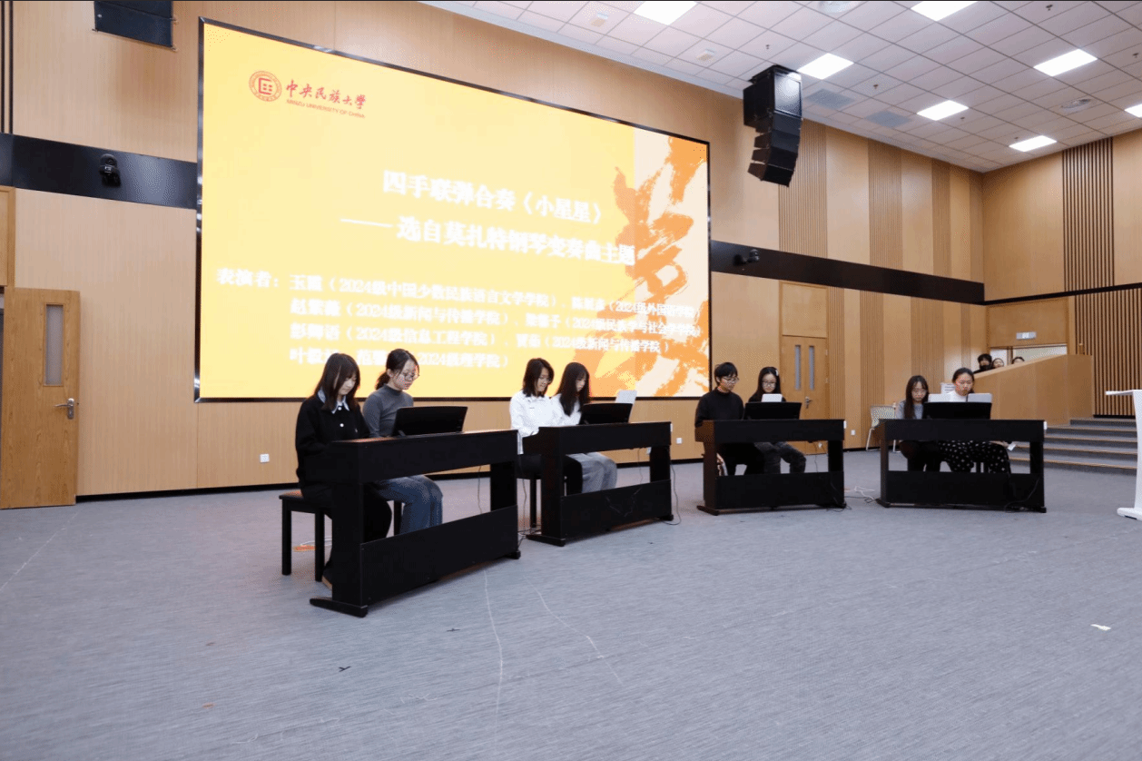 本次交流会以“课程汇报+艺术展演+互动交流”的融合形式,集中展示了七门特色鲜明、内涵丰富的美育课程,涵盖钢琴、歌剧、器乐、舞蹈、戏剧、艺术疗愈等多个领域,系统呈现了我校美育课程建设的阶段性成果,体现了学校以铸牢中华民族共同体意识为主线,推动美育融入“五育”的育人实践,生动诠释了“以美育人、以文化人”的教育理念,彰显了我校美育工作“有体系、有特色、有温度”的育人格局。