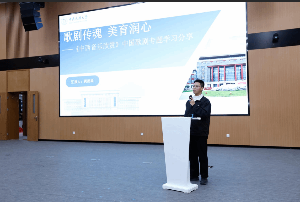 继续教育学院韩雪莲老师指导的《中西音乐欣赏》课程中,2024级法学院学生黄德梁作为代表,围绕中国歌剧专题分享了他的学习感悟。
