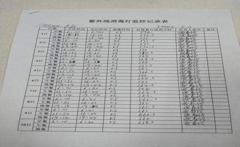 疫情发生后,餐饮管理服务中心加强了每日清洁消毒力度,增加消毒频率,对食堂及周边进行早、中、晚三次紫外线消毒并填写消毒记录表,开餐前再一次用消毒水进行全面消毒。