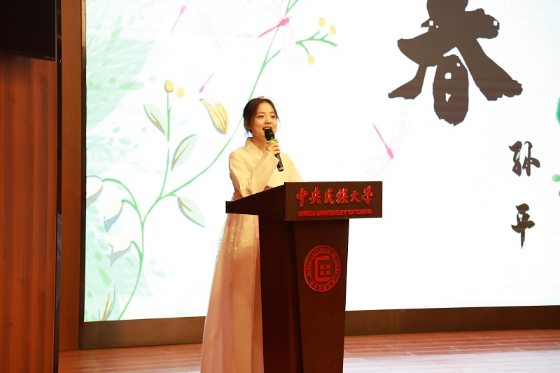 中国少数民族语言文学学院院长钟进文在讲话中说,各民族学子不仅要学好本专业,而且要努力学好国家通用语言文字,要提高国家通用语言文字的应用能力。他要求同学们要紧跟时代步伐,加强自身建设,提高自身综合能力,铸牢中华民族共同体意识。