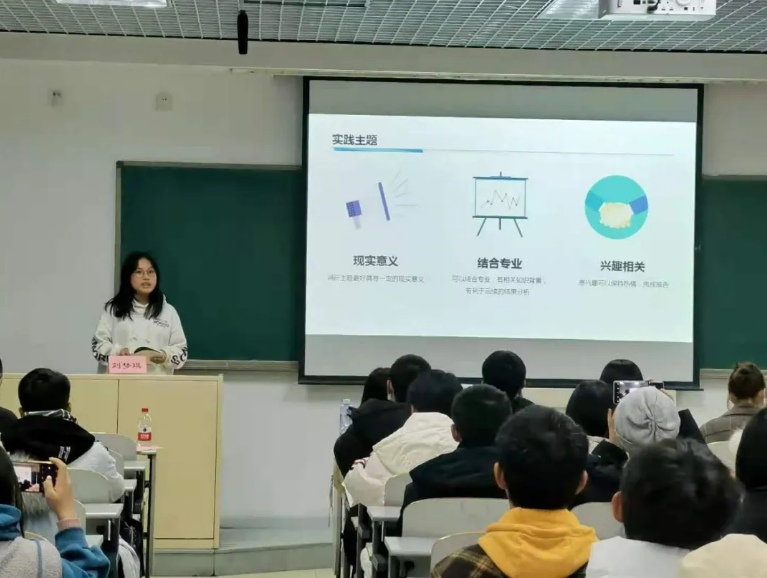 宣讲会上,团委书记王佩老师深入解读本次实践活动的时代背景和防疫常态化的要求,提出社会实践要紧扣主题,结合个人兴趣和专业特长选取调研方向;调研过程要创新形式和载体,通过多种途径搜集资料数据;调研报告的撰写要在格式规范的基础上提出可行对策和建议,体现青年思考和担当。