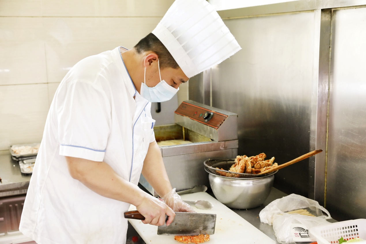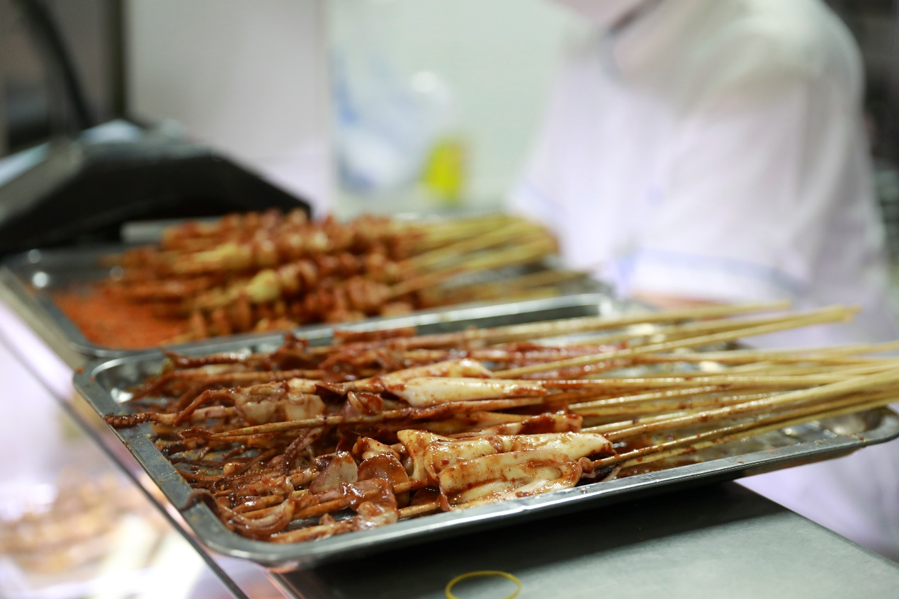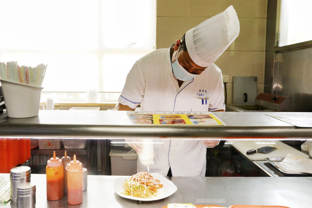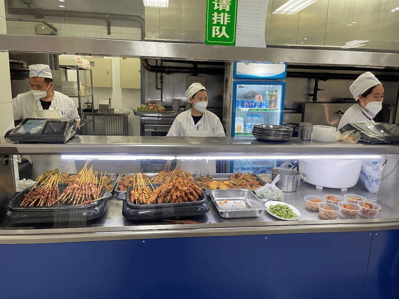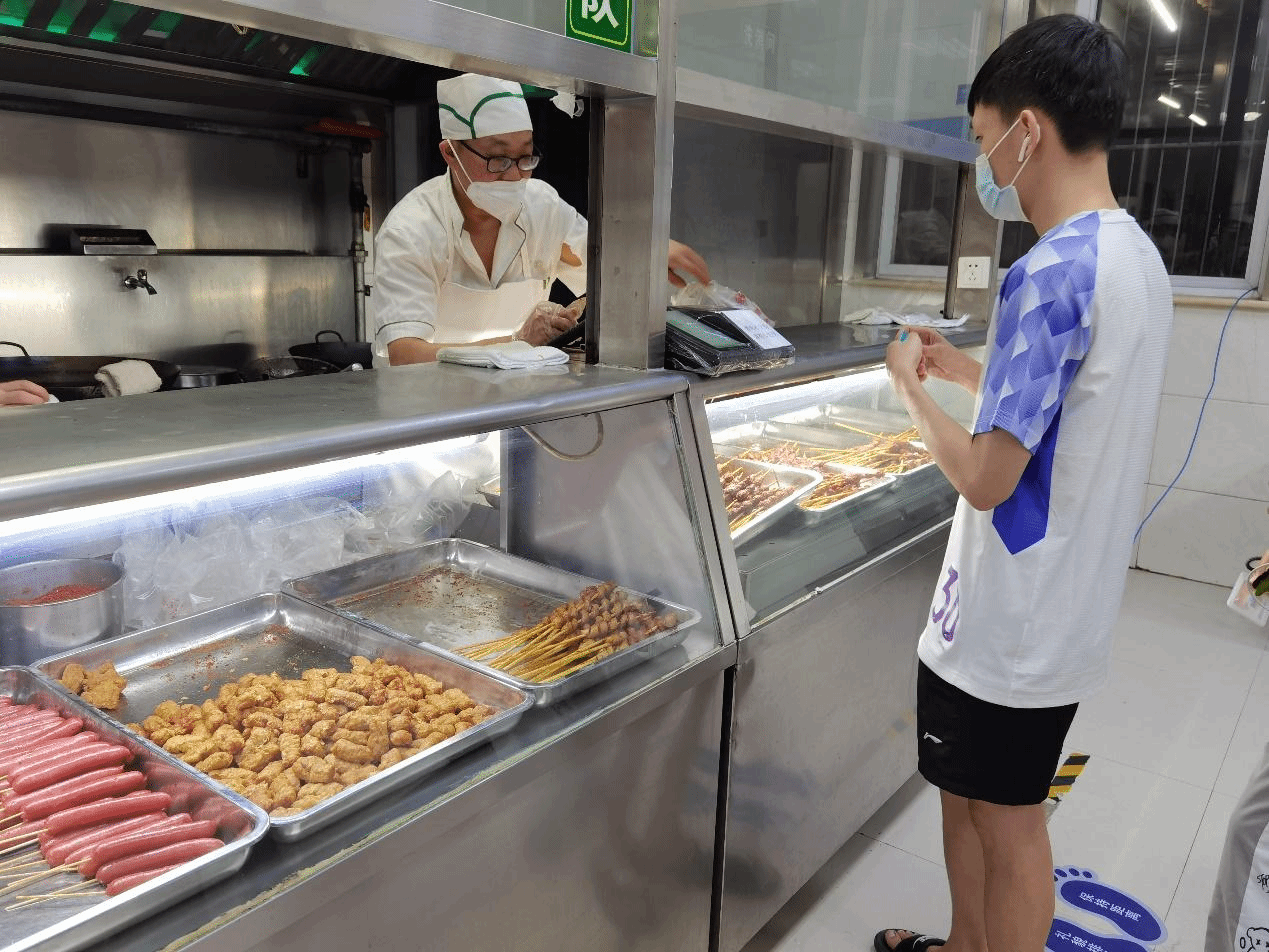 ▲每晚约500余人到食堂购买夜宵,炸肉串、炸蘑菇、炒饭尤其受到同学们欢迎