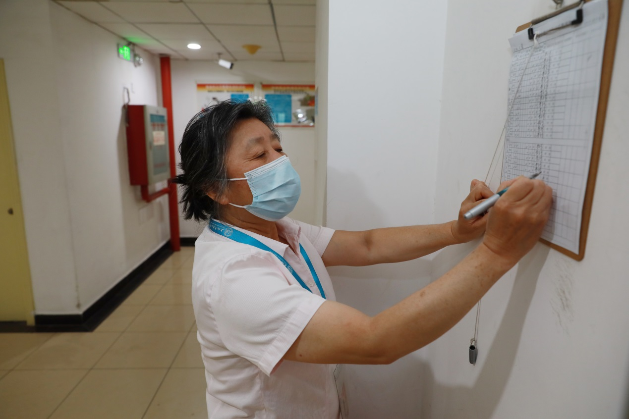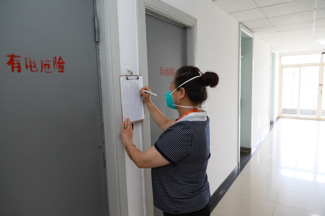 ▲学生4号公寓的楼长王秀玲在检查后签字确认