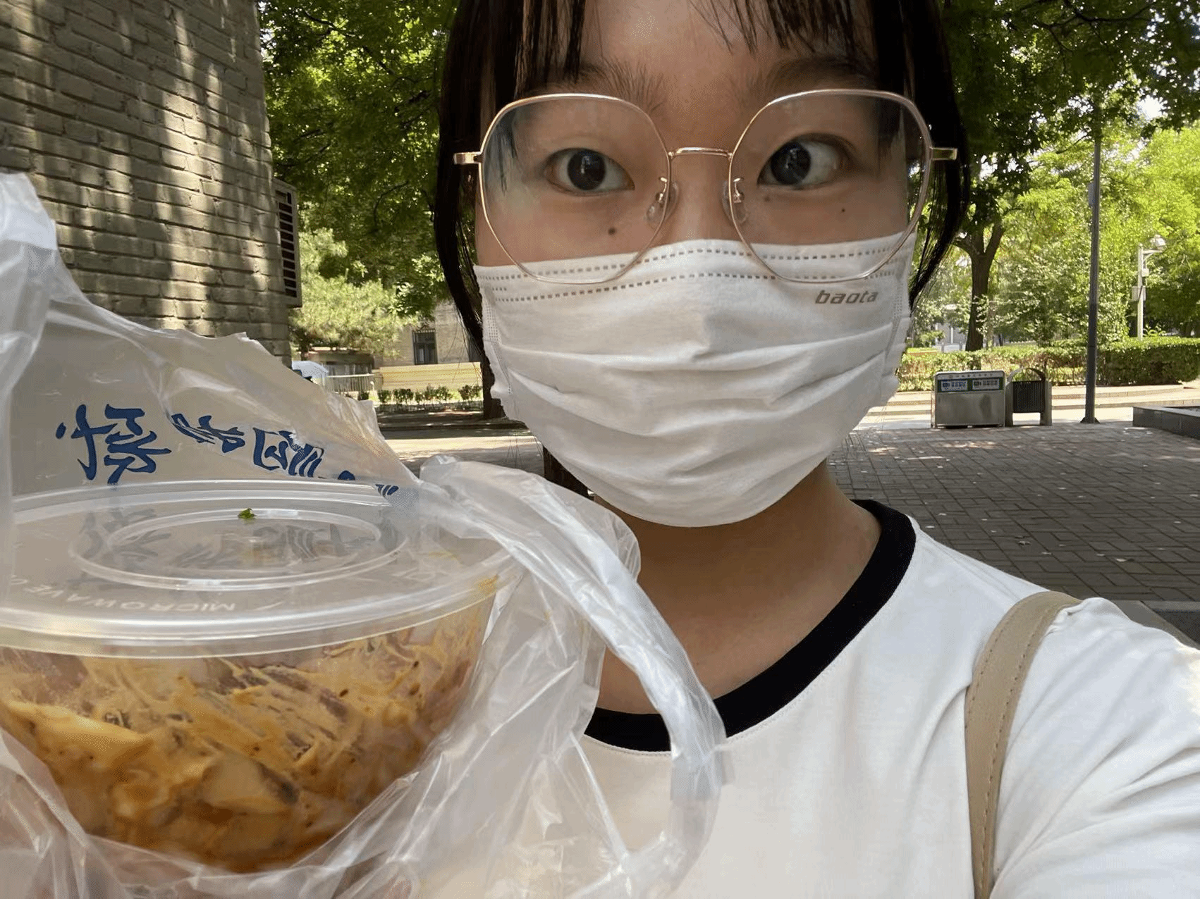 ▲学生4号公寓住宿的同学们感谢一线工作人员的付出