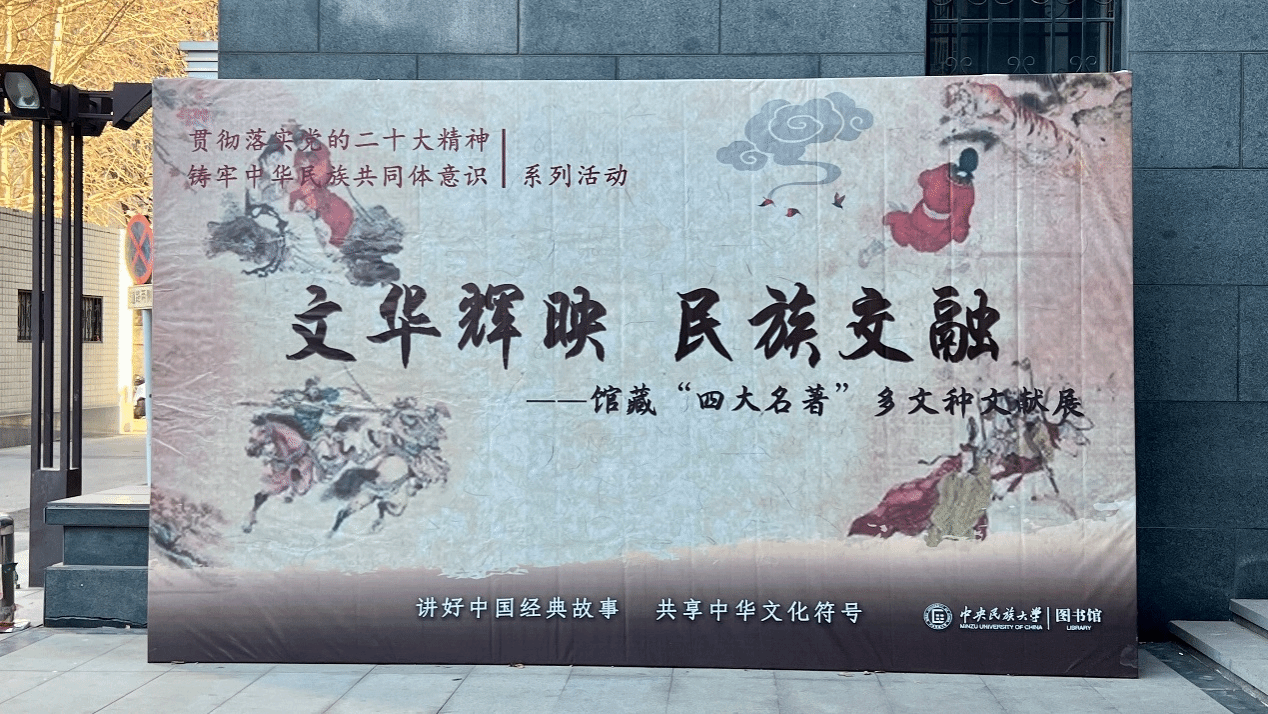 新闻网讯 近日,校图书馆主办的“文华辉映,民族交融——馆藏《四大名著》多文种文献展”在海淀校区图书馆一层大厅开展。本次展览利用多文种馆藏讲好中国经典故事,共享中华文化符号,是深入民族团结进步教育,开展铸牢中华民族共同体意识教育和学习贯彻落实党的二十大精神的系列活动之一。