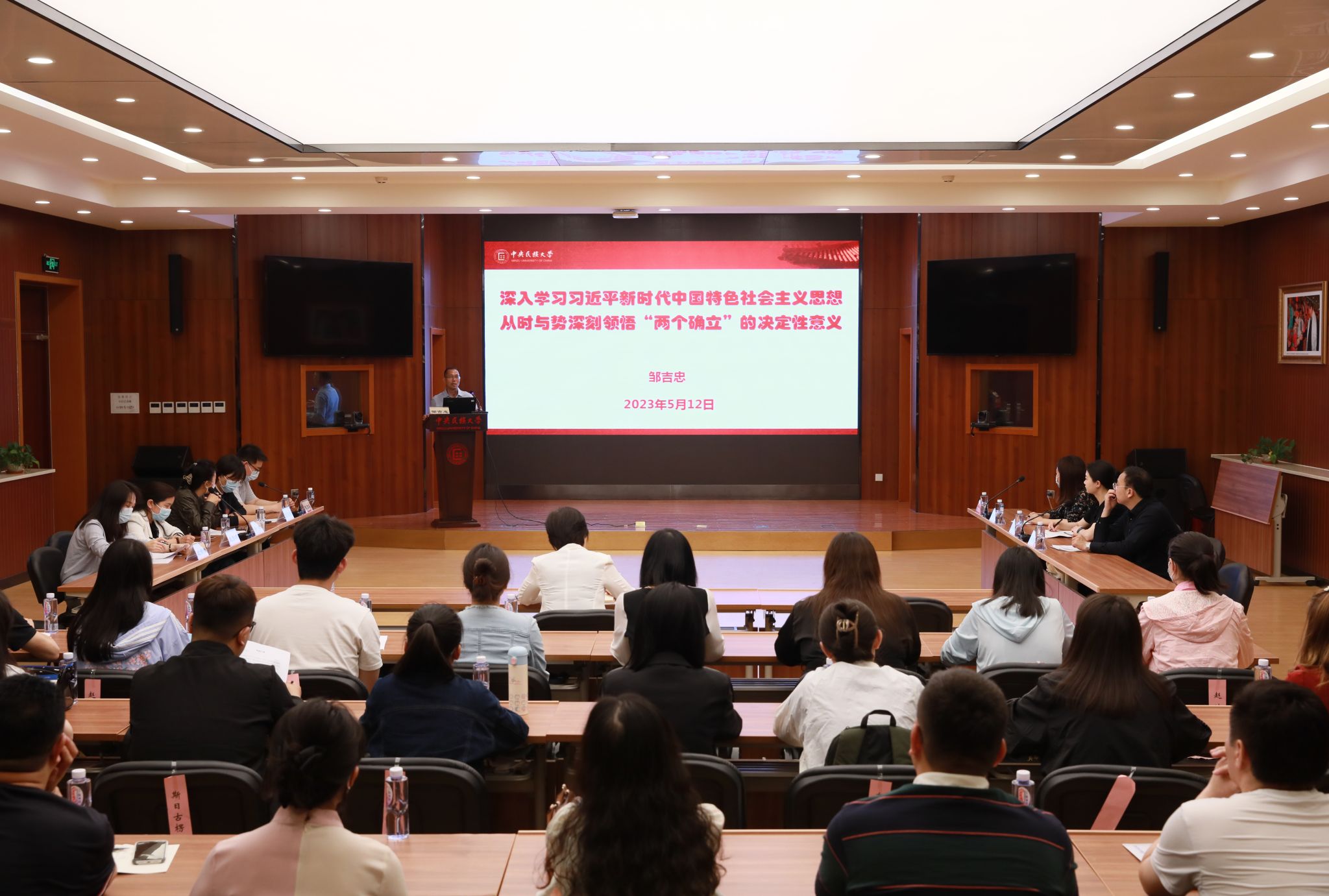新闻网讯 在全党深入开展学习贯彻习近平新时代中国特色社会主义思想主题教育之时,5月12日下午,william威廉中文官网第17期教师党员发展对象培训班专题报告和交流研讨在海淀校区知行堂举行。校党委副书记邹吉忠作专题报告,党委组织部常务副部长张文香主持。