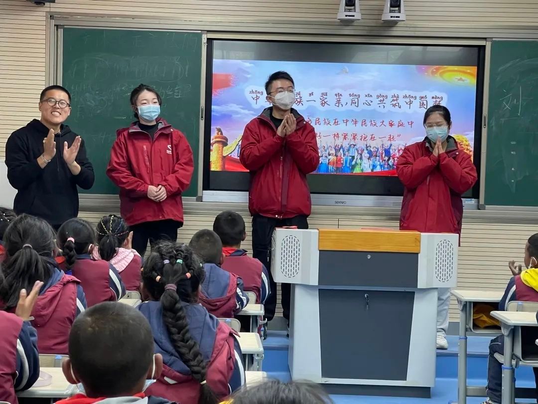 为了扩大民族团结教育覆盖面,我校研支团积极与其他高校研究生支教团合作,与中国海洋大学研究生支教团一同赴拉萨北京实验中学为初二年级学生开展民族团结大讲堂。