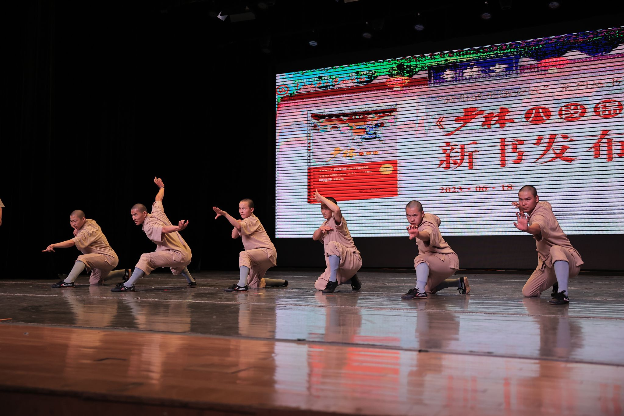 发布会现场,释延开监院详细介绍了编写该书的历程,分享了自己习练八段锦的心得。随后,少林寺武僧团现场演示了全套八段锦功法,并表演了精彩的少林功夫,引起现场八段锦爱好者和观众的热烈反响。