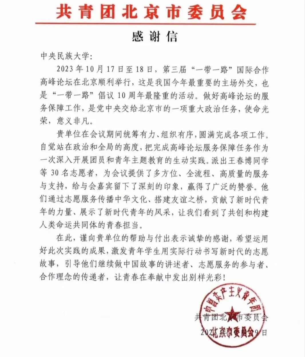 伴随着第三届“一带一路”国际合作高峰论坛画上圆满句号,一些动人的瞬间成为无数人心中美好的回忆。金秋时节,天高气爽,风清日朗。天安门广场上,共建“一带一路”国家国旗迎风飘扬;论坛期间,民大志愿者们以热情饱满的姿态弘扬着新一代丝路精神。