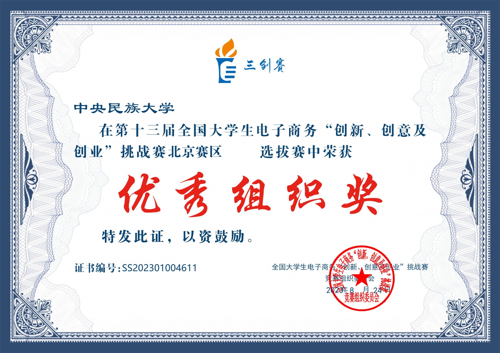 全国大学生电子商务“创新、创意及创业”挑战赛是在教育部高等学校电子商务专业教学指导委员会指导下,由全国电子商务产教融合创新联盟和西安交通大学主办,并列入中国高等教育学会《全国普通高校学科竞赛排行榜》赛事。截止目前,我校已连续5年参加该项竞赛活动,累计参赛项目达895个。2020-2023年间,我校在该项系列赛事活动中先后荣获优秀(最佳)组织奖3项、省部级荣誉奖项89项,其中北京市特等奖2个、一等奖10个、二等奖39个、三等奖29个、最佳创新奖2个、最佳创意奖2个、最佳创业奖5个;国家级荣誉奖项2项,其中全国总决赛一等奖1项、二等奖1项,带动了我校师生“三创”意识的提高,持续发挥着大赛促进教学、大赛促进实践、大赛促进创新、大赛促进育人的作用。