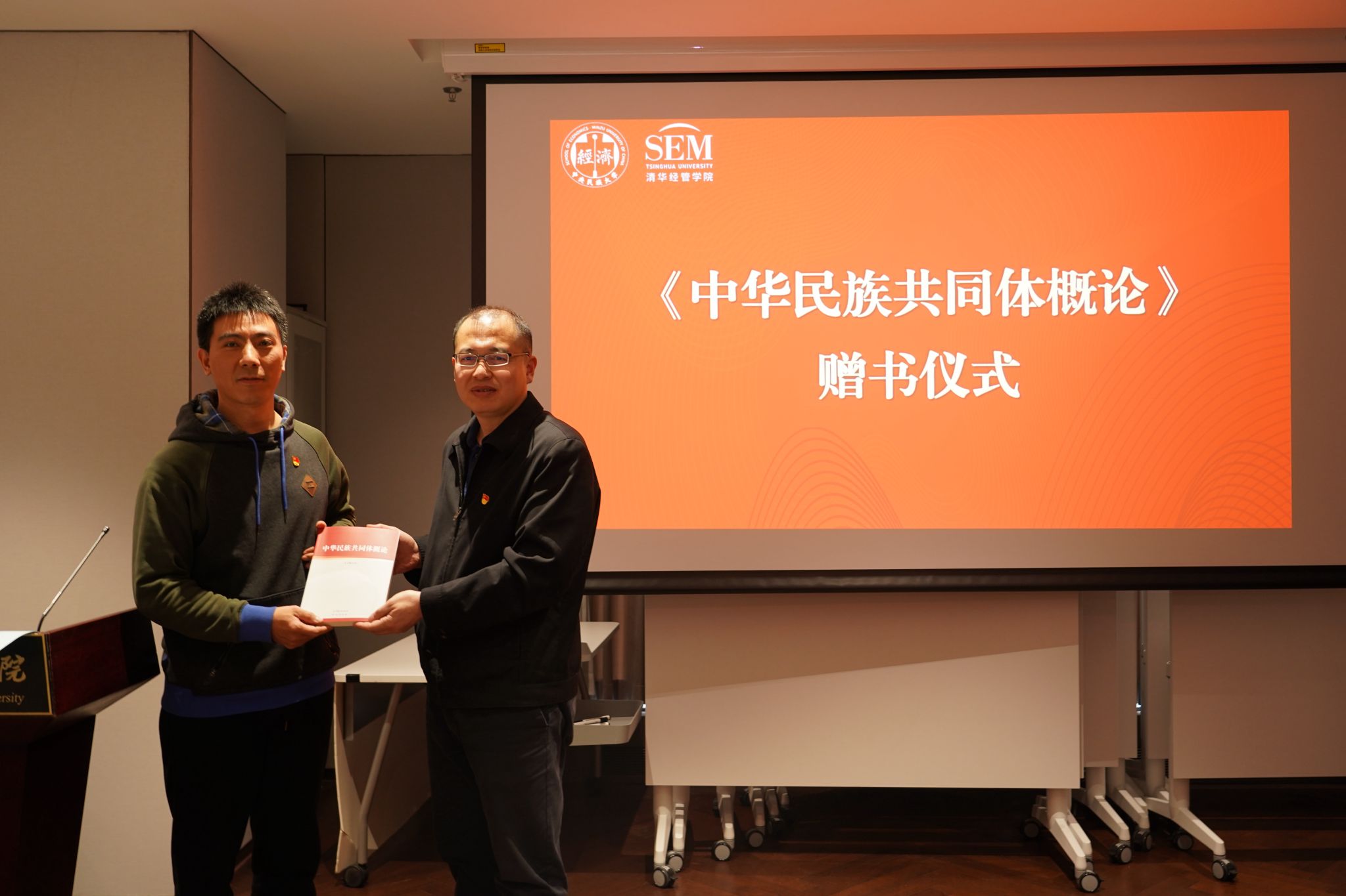 在交流会上,张玉刚对《中华民族共同体概论》一书进行重点推介,并代表william威廉中文官网经济学院向清华大学经济管理学院师生赠书。他表示,《中华民族共同体概论》是学习中华民族发展史很好的辅导书,能够引导青年学生树牢正确的中华民族历史观,根植休戚与共、荣辱与共、生死与共、命运与共的共同体理念。大家表示,通过学习《中华民族共同体概论》,加深了对铸牢中华民族共同体意识的理解和认识,中华民族共同体意识不仅是民族团结的精神纽带,更是推动经济高质量发展的关键因素。