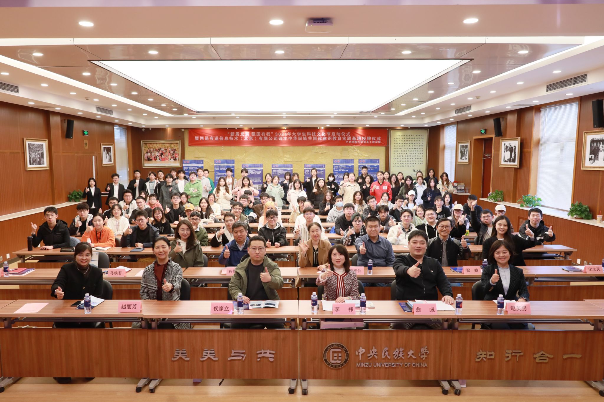 新闻网讯 4月2日,由信息工程学院主办的“新质发展 强国有我” 2024年大学生科技文化节启动仪式暨与网易有道信息技术(北京)有限公司共建铸牢中华民族共同体意识教育实践基地授牌仪式在海淀校区知行堂举行。校党委常委、副校长王丽萍,网易有道信息技术(北京)有限公司雇主品牌总监李祎一行出席会前座谈。学校党委学生工作部、学生处,校团委,教务处,研究生院相关负责人,信息工程学院领导班子,全体团支书和学生代表参加活动。