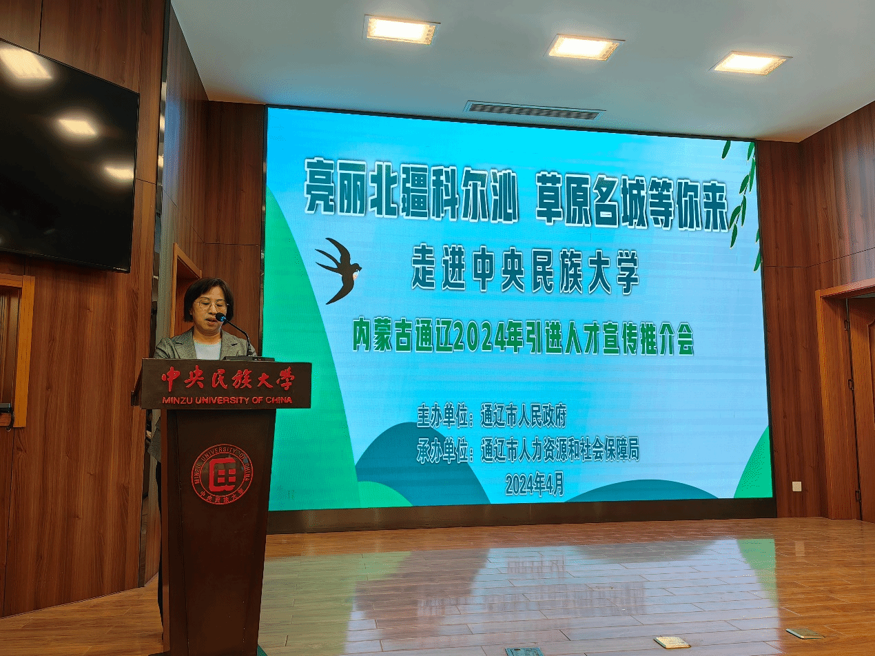 王丽萍表示,学校党委高度重视毕业生就业工作,不断深化校地校企合作。通辽市2014年启动来京引才工作以来,一直将民大作为开展活动的重要基地,双方从毕业生引才到就业实习实践,建立了广泛而密切的联系。举办常态化引才活动,证明了通辽这座城市有惜才爱才的肥沃土壤。主动送岗上门,更真诚释放了通辽对人才的最大诚意。王丽萍勉励同学们珍惜宝贵的工作机会,充分利用好本次引才活动,了解通辽、热爱通辽、选择通辽。