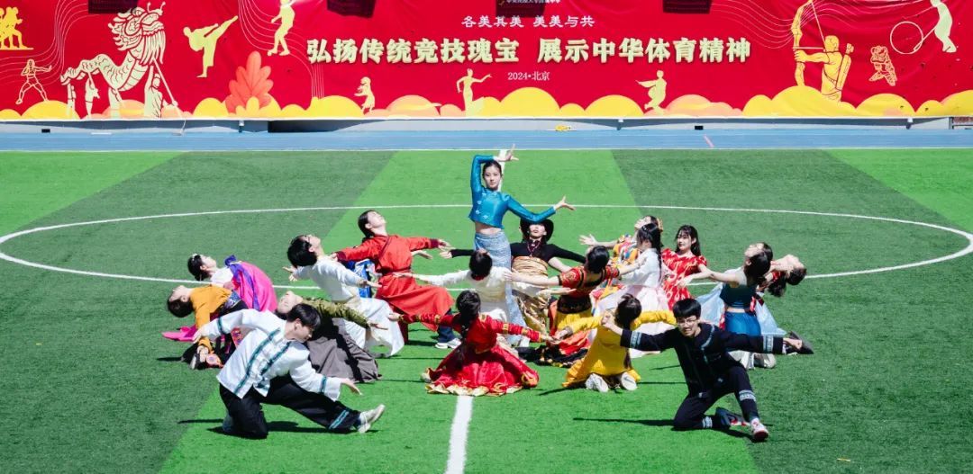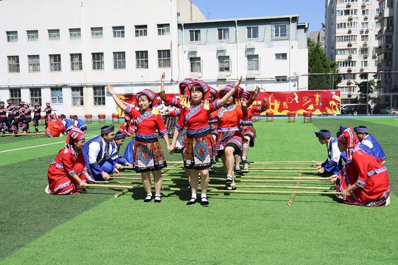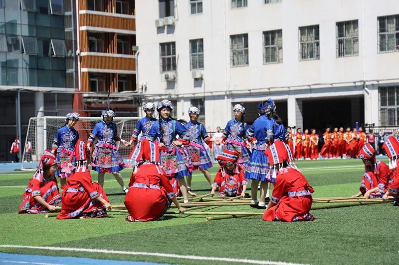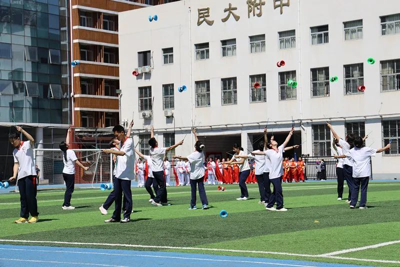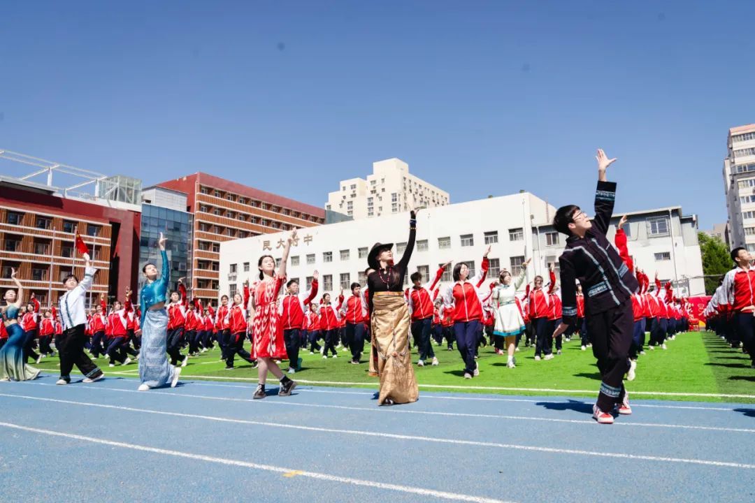 伴着《爱我中华》的歌曲旋律,开幕式上民大附中特色课间民族韵律操上演;舞龙舞狮、中华武术在青春的操场上巧妙融合;竹竿清脆的敲打声配合着动感的音乐,竹竿舞将民族传统文化与阳光体育锻炼融为一体;五彩的空竹翻飞起舞,青春风采赋予了传统运动新的青春活力;柔美与力量碰撞交融,《石榴籽一家亲》演绎着独具中华韵味的健身操……书写民附人昂扬向上的精神风采,展现着“中华民族一家亲,同心共筑中国梦”的美好愿景。