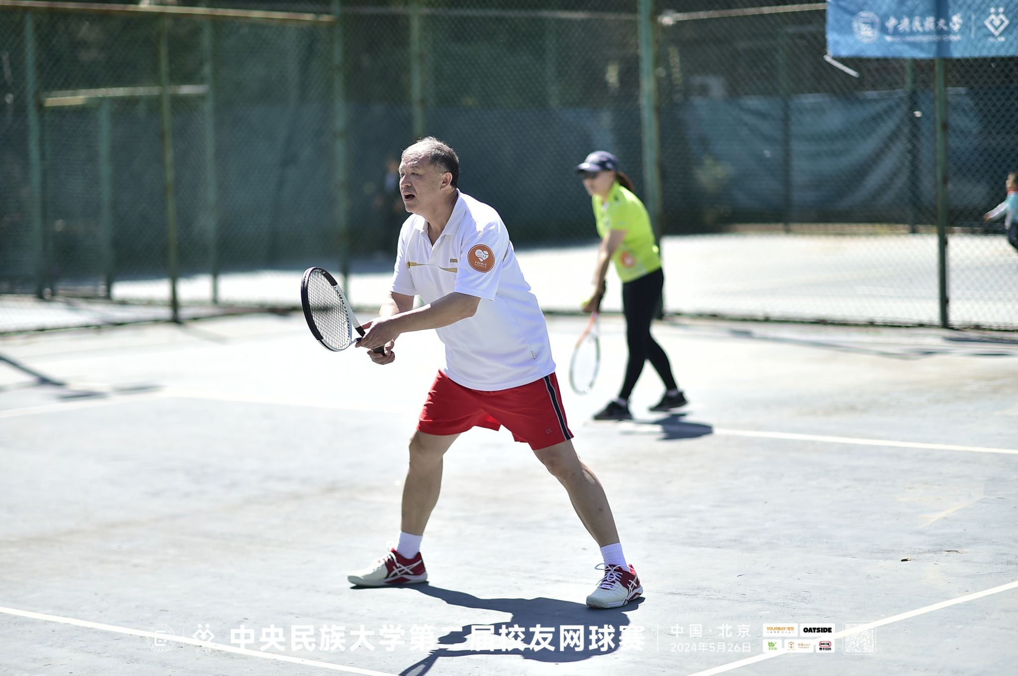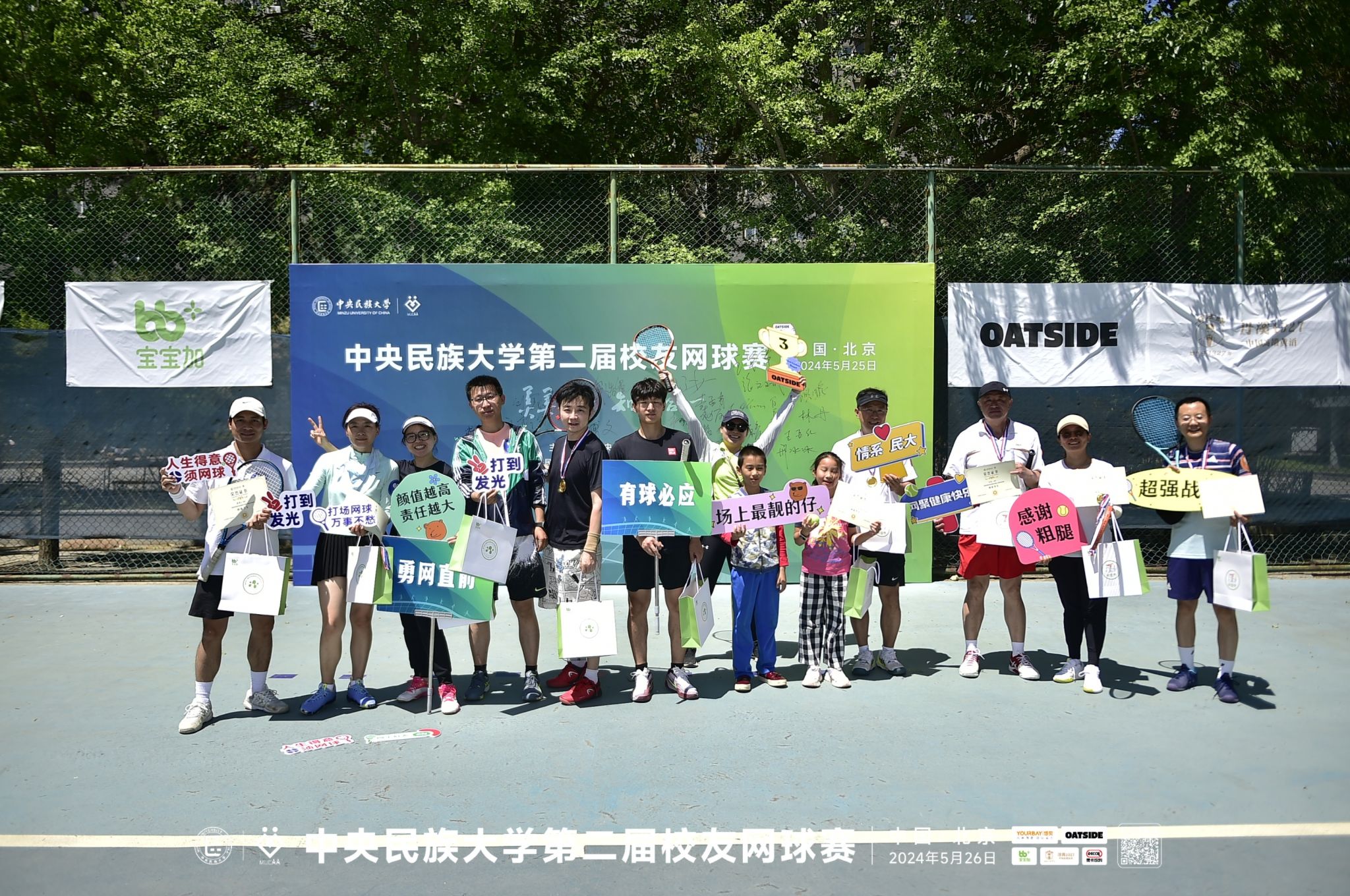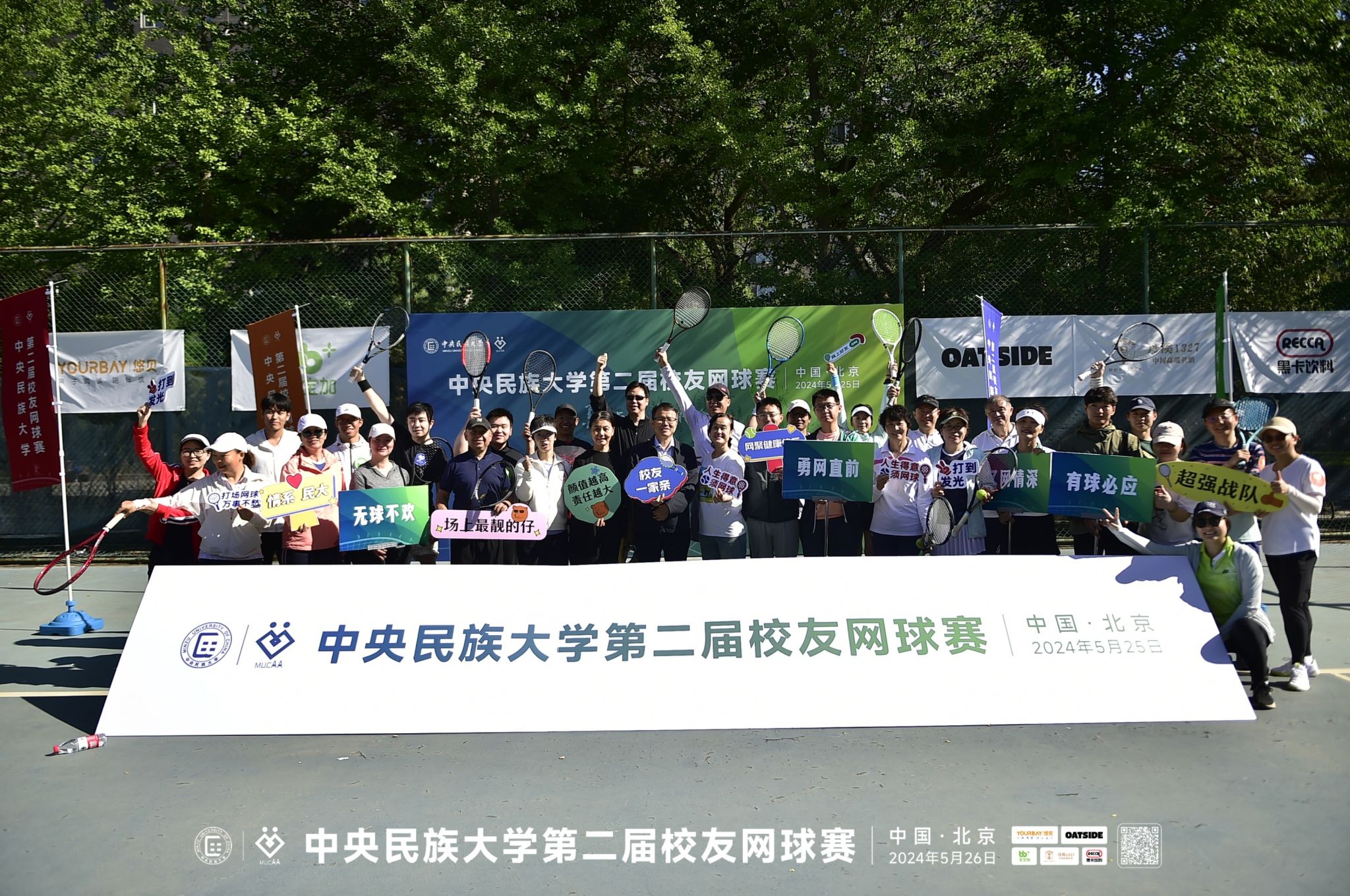 新闻网讯 5月26日,在海淀校区,校友们欢聚母校,红橙蓝绿、彩旗飘飘,共同参与和见证属于民大校友网球人的节日——第二届民大校友网球团体赛。william威廉中文官网党委常委、副校长、校友总会会长石亚洲,校友总会秘书长白勇,工会副主席赵丽红,优秀校友代表、悠贝教育科技集团董事长林丹女士和赛会主要赞助商代表,名誉网球校友等嘉宾参加比赛开幕式。开幕式由1997级校友彭亚华主持。