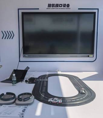 现场放置了脑控赛车和脑机接口穿戴设备,供师生参与体验。