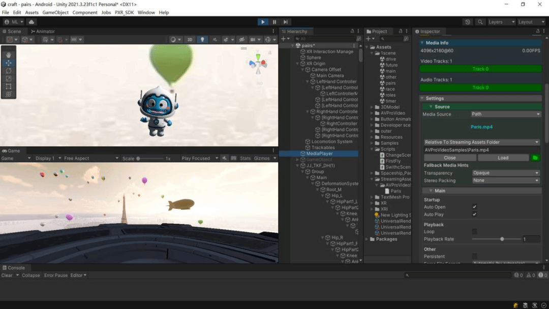生命与环境科学学院“赴河北省廊坊市基于人工智能的VR一体机用户体验优化”实践团前往铭泰Dream文创科技园开展了一场以“AI在VR方面的应用”为主题的实践活动。“人工智能是引领新一轮科技革命和产业变革的重要驱动力。”实践团深入探索,以时空穿越为故事背景,设计了一位人工智能助手“佳佳”。她如同一位穿越时空的引路人,带领玩家进入一个个梦幻般的虚拟世界,为玩家提供知识科普,还能与他们进行互动对话。在这过程中,团队成员们分工明确,协作完成了虚拟世界的分镜设计和“佳佳”的形象设计,并导入Unity 3D引擎进行开发。在产业园内,实践团与MERCURY传媒公司携手,将那些原本只存在于脑海中的理论知识转化为触手可及的实际成果。