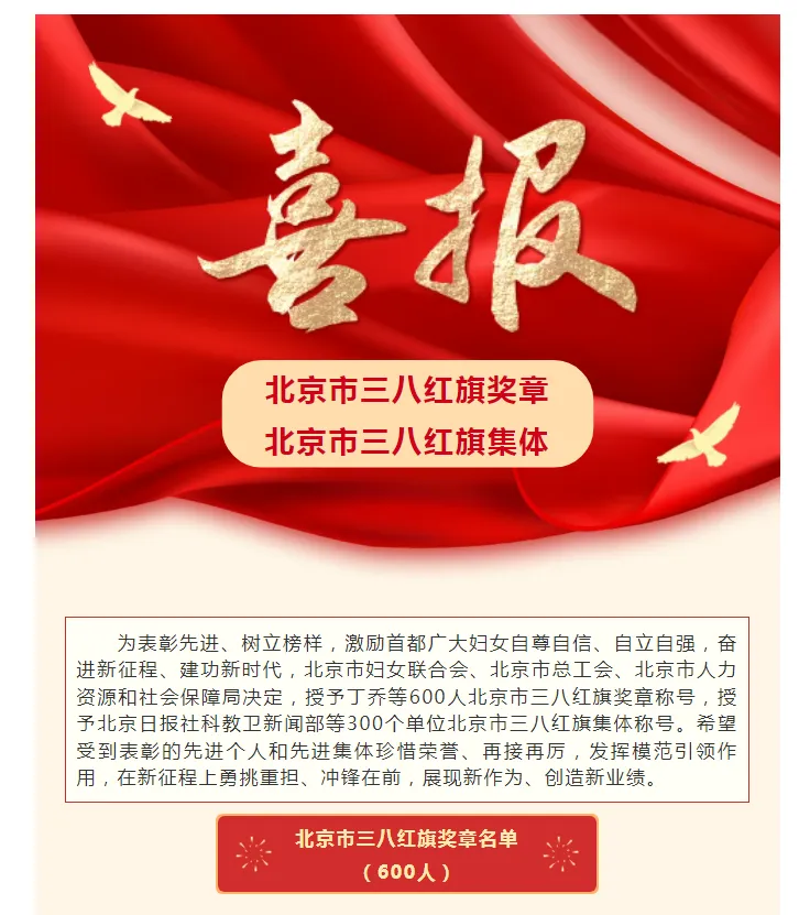 新闻网讯 近日,北京市妇女联合会、北京市总工会、北京市人力资源和社会保障局联合发布表彰决定。我校文学院王卫华教授荣获2024年“北京市三八红旗奖章”荣誉称号。