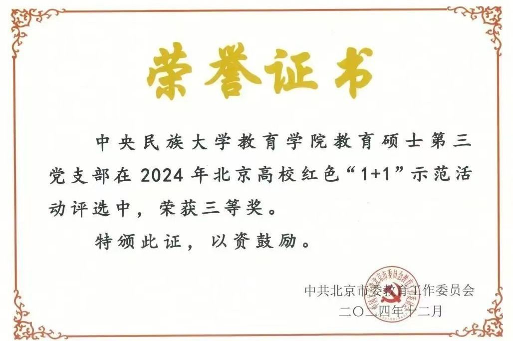 新闻网讯 为推动思政小课堂和社会大课堂有机融合,开创新时代思政教育新局面,学校持续积极组织开展红色“1+1”党支部共建活动。在市委教育工委组织的2024年北京高校红色“1+1”示范活动评选展示交流活动中,经学校推荐、材料审核、专家评审、现场展示等环节,学校教育学院教育硕士第三党支部、生命与环境科学学院生物类本科生党支部荣获三等奖。今天让我们来认识教育学院教育硕士第三党支部吧!