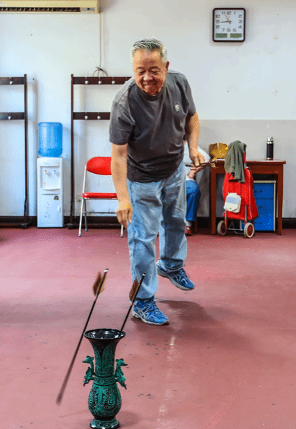 运动会设置沙包投准、滚球击物等五个比赛项目,其中“花炮”和今年新增的“投壶”为民族传统体育项目,趣味性、参与性强,深受老同志们的喜爱。赛场上,老同志们精神焕发、全神贯注、努力拼搏,不时传来阵阵欢笑声与加油助威声。赛场外,他们关注康养生活,相互问候,热情交流,追忆美好,畅想学校发展与祖国未来。