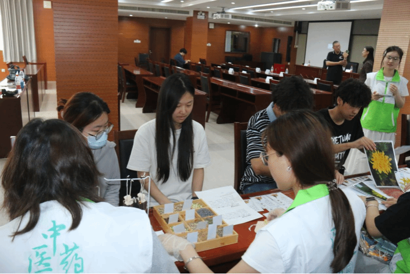 值得关注的是,药学院精心设置的“本草慧眼・探秘入门”中药材辨识科普区与“芳疗工坊・巧手药香”香囊DIY互动体验区,通过沉浸式体验让师生感受中医药文化魅力。在中药材辨识区,师生们通过观察药材标本与聆听讲解加深对中医药的认知;香囊DIY区则吸引众多师生亲手调配药材,体验艾叶、薄荷等中药的芳香疗法。