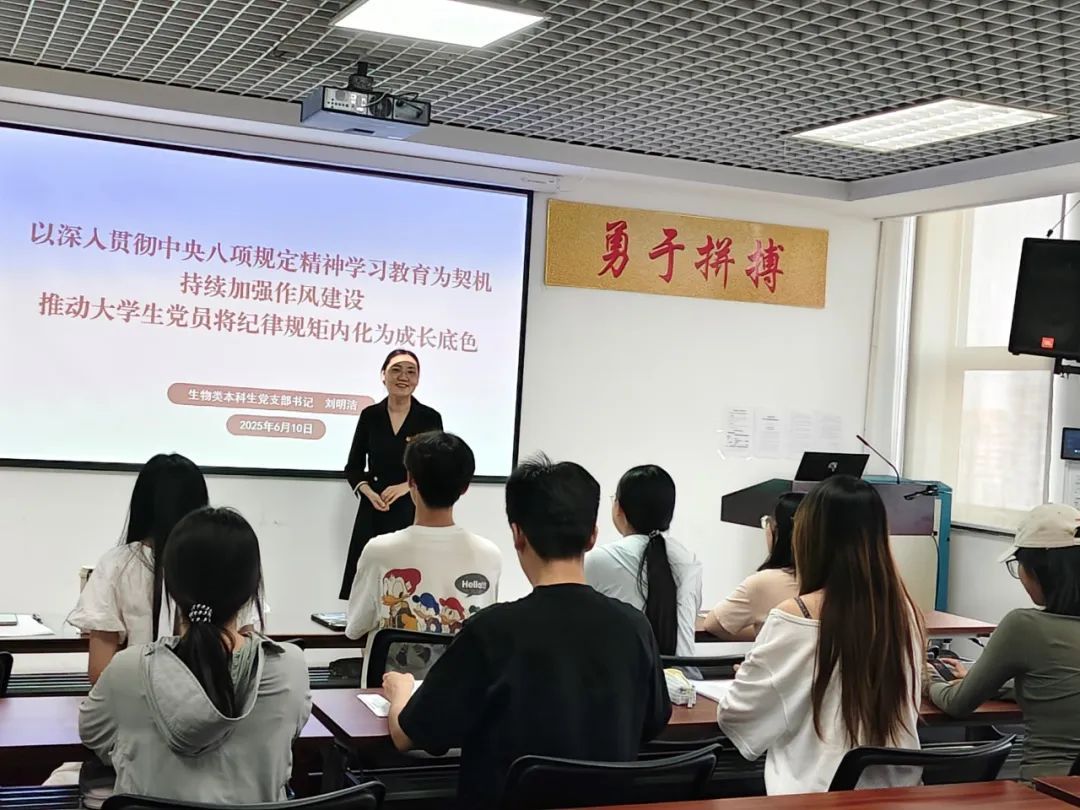 刘明洁老师在学生党支部建设规范化、标准化的基础上坚持守正创新,积极探索学生党建工作路径。以“七个有力”为目标,以专业为依托,结合学生实际,组织党支部开展形式多样、内容丰富的教育实践活动。