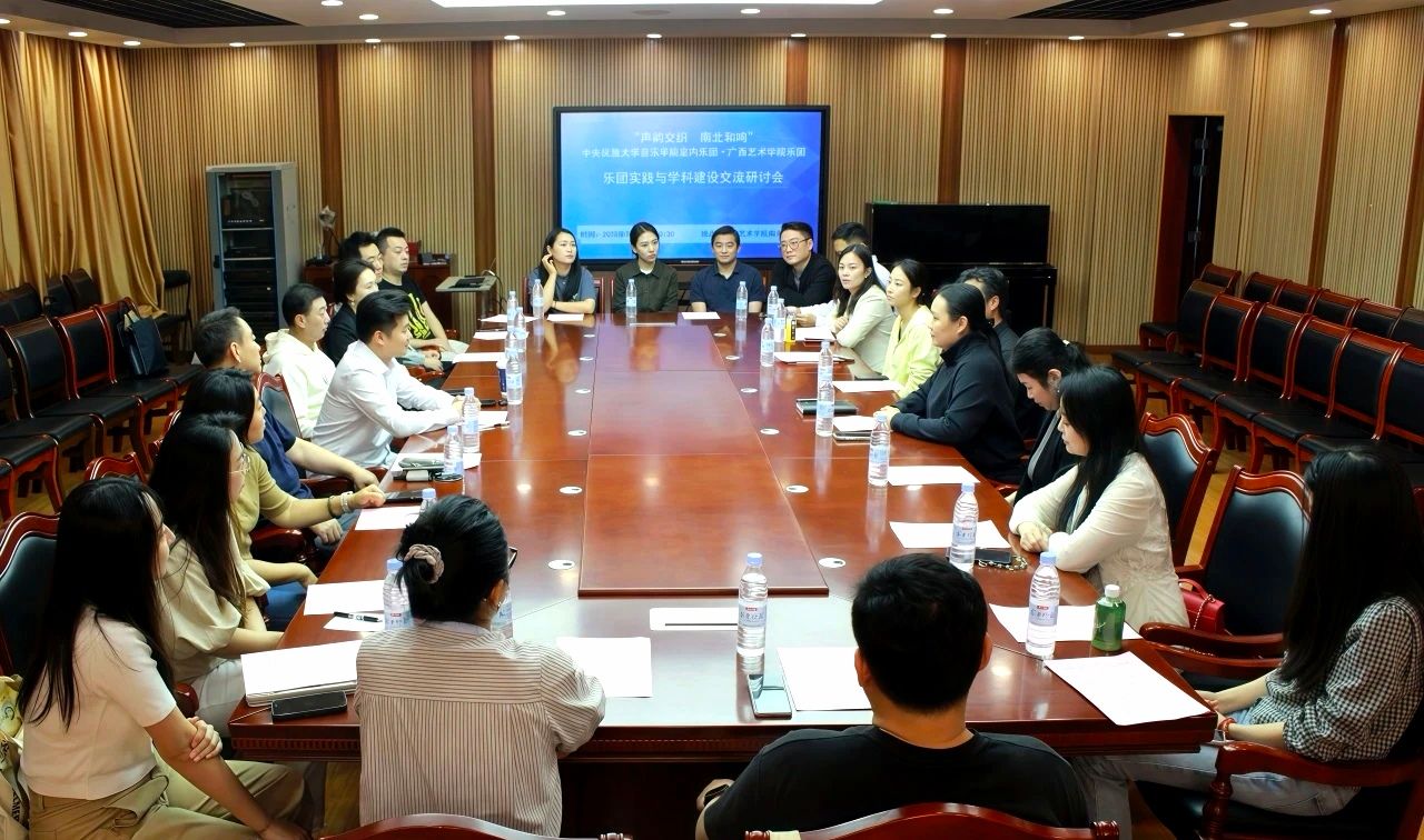 音乐周期间,代表团参加了广西艺术学院“召开的声韵交织 南北和鸣”—乐团实践与学科建设专题研讨会。两校专家学者聚焦“民族音乐传承”“人才培养创新”“学科提质路径” 等民族音乐发展核心议题展开深度对话并达成共识,表示今后将共探艺术院校高质量发展与民族艺术传承模式,在民族音乐学术研究、艺术创作领域深度合作,共同推动民族音乐教育高质量发展。