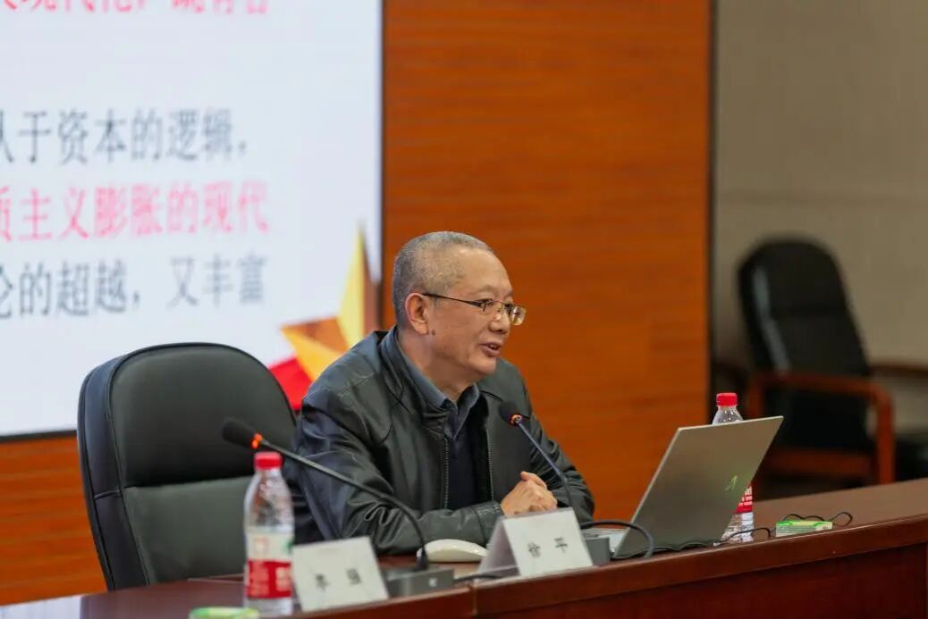 新闻网讯  11月7日下午,文学院、新闻与传播学院党委理论学习中心组(扩大)学习会在文华楼一层报告厅召开。中央党校督学专家、文史部二级教授、博士生导师徐平教授受邀作《续写中国奇迹新篇章、奋力开创中国式现代化新局面——党的二十届四中全会精神解读》专题党课。文学院、新闻与传播学院全体教师及部分学生党员参会学习。