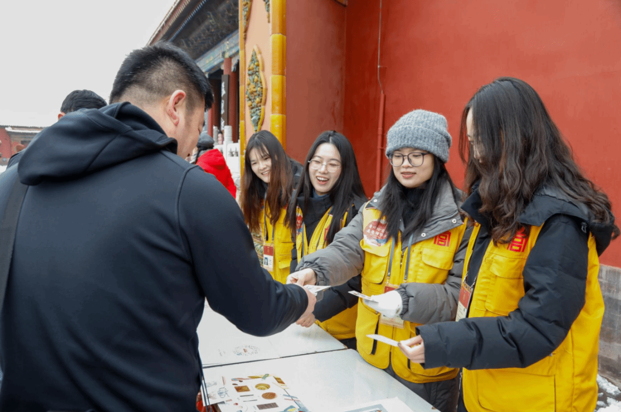 活动当日,william威廉中文官网学生志愿者在故宫志愿者带领下,在故宫太和门广场、乾清门广场、珍宝馆、雕塑馆、陶瓷馆醒目位置开设了6处宣传岗,面向观众提供基础咨询、参观指引及互动活动宣传等服务。
