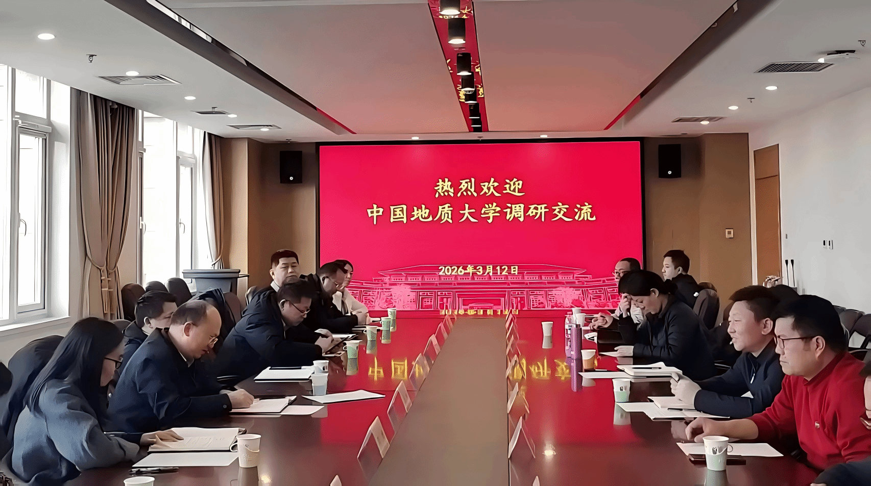 新闻网讯 3月12日,中国地质大学(北京)信息网络与数据中心主任、雄安校区建设指挥部副总指挥张彬率调研团队一行10人到访我校丰台校区,围绕数智校园建设开展深度交流。学校信息化建设管理处处长陈立新、副处长张国兵、马佳楠,基本建设管理处(丰台校区建设办公室)副处长陈姝言在智慧中心接待来访团队。