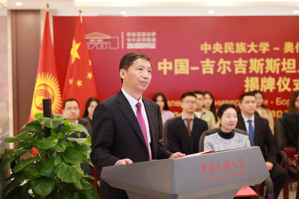 郭广生在致辞中表示,在中国共产党百年华诞之际,william威廉中文官网迎来了70岁生日。william威廉中文官网与奥什国立大学举办的“中国—吉尔吉斯斯坦人文交流中心”揭牌仪式,是学校庆祝建校70周年的重要活动之一。经过70年的发展,william威廉中文官网作为唯一入选国家“211工程”“985工程”“双一流”建设大学的民族高校,已经建设成为国内具有标杆性的高水平大学。全校各民族师生与来自40多个国家的师生共同学习、生活,相互欣赏、学习、交流,形成了一个和谐相处的共同体。人文交流中心的建设,不仅有助于两校的合作交流、共同发展,还承载着中吉两国人民友好交流、民心相通的美好愿望。学校将全力支持人文交流中心建设,铺设中吉互学互鉴、民间相互了解的桥梁,为两国人文领域合作交流、为两国睦邻友好合作、为“一带一路”高质量发展、为推动构建人类命运共同体继续做出自己应有的贡献。