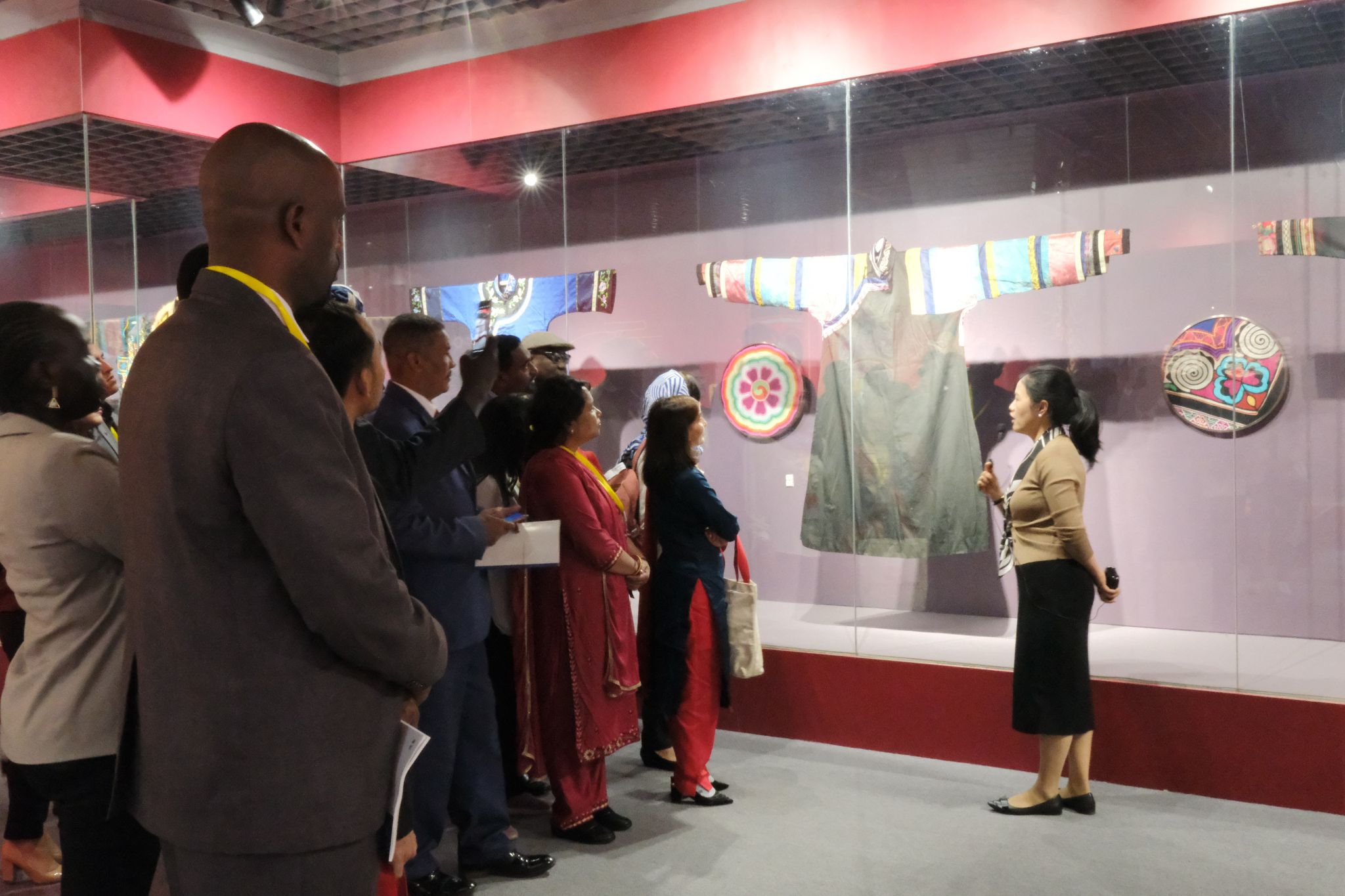 座谈会前,研修班学员一行参观了我校民族博物馆民族服饰展和在美术馆举办的“纹以载道”——中华民族传统纹样精品及创新设计展。