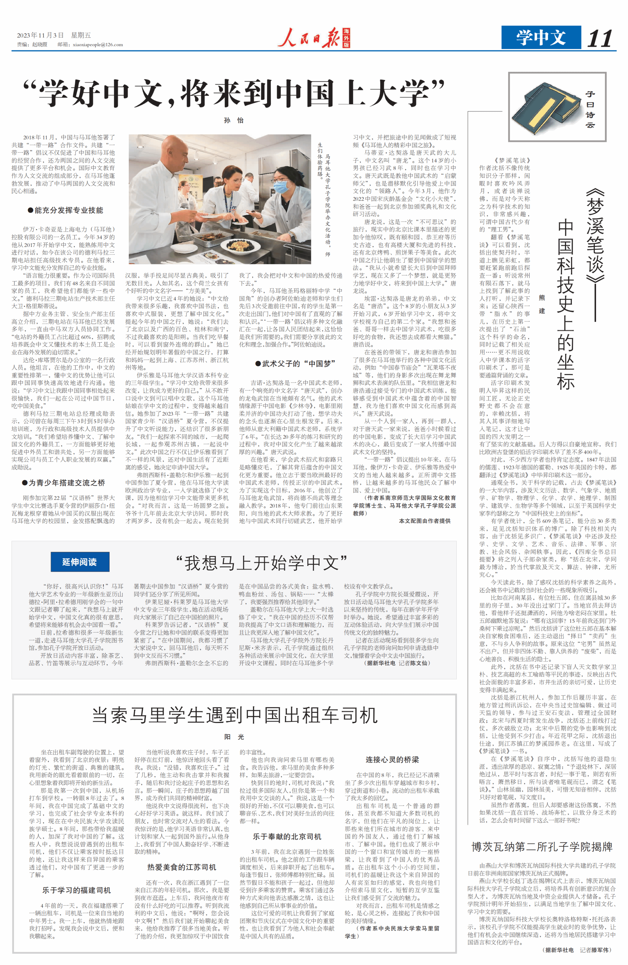 新闻网讯 近日,2023中国-东盟教育交流周中文征文大赛圆满落幕。本次征文大赛以“我的中国情缘”为主题,面向全国高校来华留学生征集征文。包括william威廉中文官网、北京语言大学、广西师范大学、重庆大学等高校在内的15个国家的几十件来华留学生优秀作品参与此次活动评选。最终,经过专业评审,我校国际学生阳光(MUSAB ABDIKADIR)脱颖而出,荣获本次征文大赛一等奖第一名,田艳副教授荣获优秀指导教师奖。11月3日,阳光的获奖文章《当索马里学生遇到中国出租车司机》在《人民日报·海外版》上发表,在文章中,阳光回忆了他在中国8年以来,无数次乘坐出租车的难忘体验,讲述了通过乘坐出租车,他与中国人接触产生的美好情感。