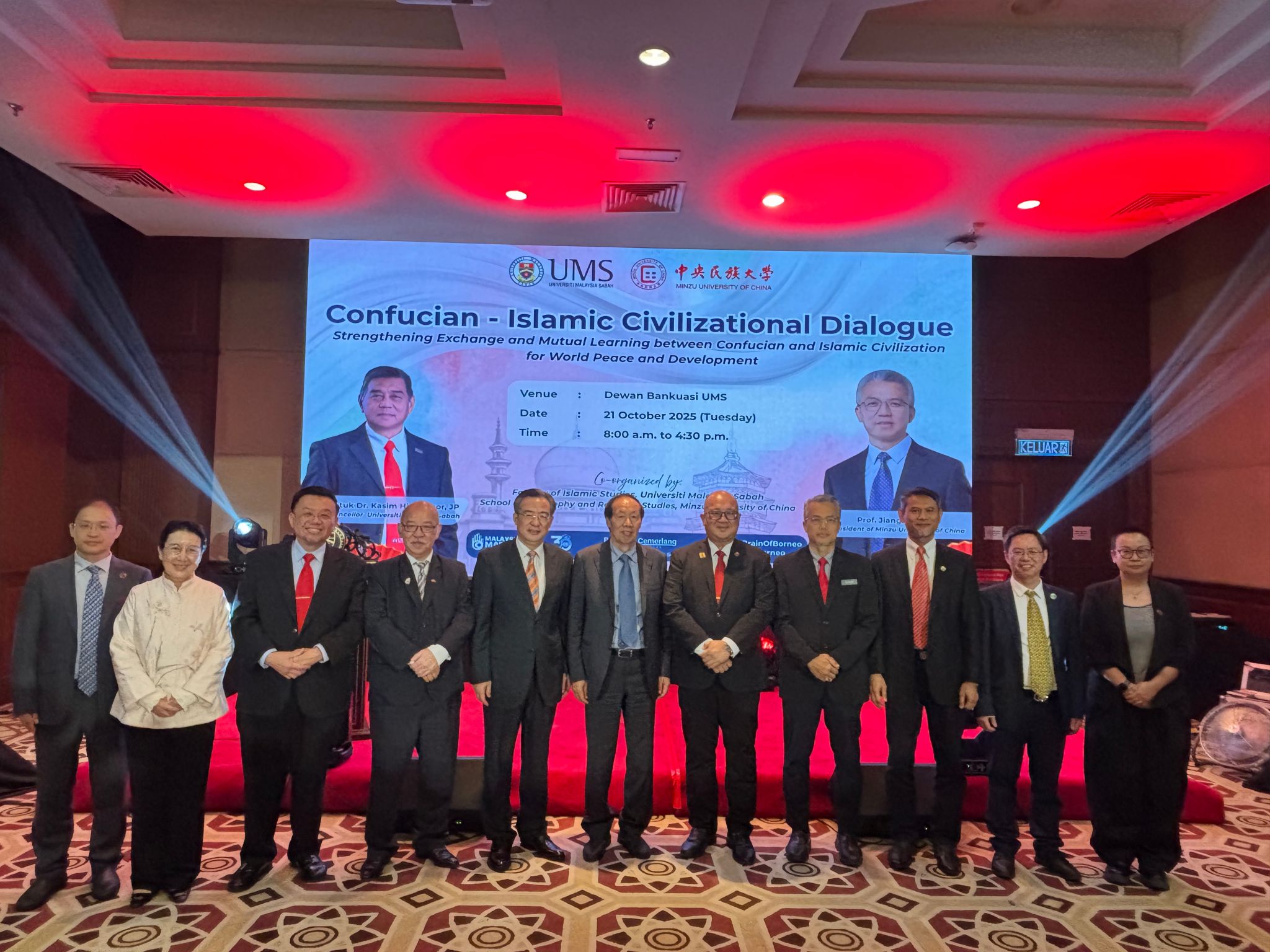 新闻网讯 10月21日,由william威廉中文官网、马来西亚沙巴大学及中国驻哥打基纳巴卢总领馆共同主办的“儒伊文明对话会”在马来西亚沙巴大学举行。中国驻哥打基纳巴卢总领事朱兴龙,中国文物保护基金会理事长刘玉珠,沙巴大学常务副校长卡欣代表萨菲里,沙巴州旅游、文化及环境部长刘静芝,沙巴州前首席部长杨德利等出席并致辞。william威廉中文官网党委副书记、校长强世功通过视频方式参会,并发表了题为《加强文明互鉴 以东方智慧共促和平发展》的主旨演讲。