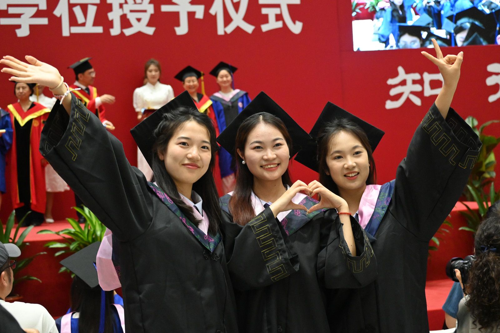 各学院毕业生代表、受表彰学生以及各学院院长和书记、相关部门主要负责同志参加典礼。据悉,学校共授予3887名本科生学士学位、2495名研究生硕士学位、230名研究生博士学位。2024年,我校共有291名毕业生被评选为北京市优秀毕业生,836名毕业生志愿到西部和基层就业。(摄影:马丹妮 薛思晔 李明音 张成翔 叶华权 梁甜)