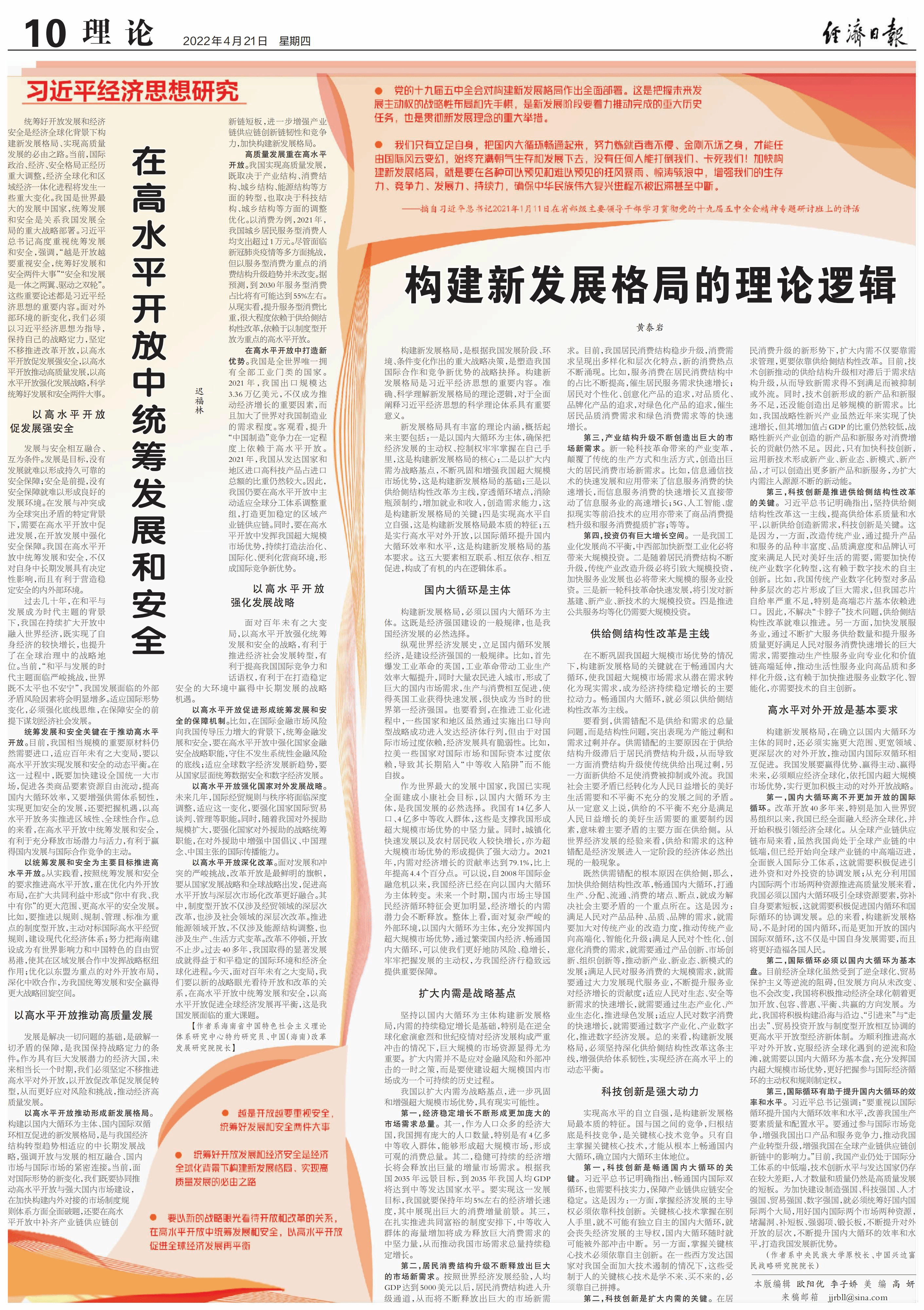 新闻网讯 4月21日,《经济日报》刊发我校资深教授,中国兴边富民战略研究院院长黄泰岩《构建新发展格局的理论逻辑》一文,文章指出,准确、科学理解新发展格局的理论逻辑,对于全面阐释习近平经济思想的科学理论体系具有重要意义。全文如下:
