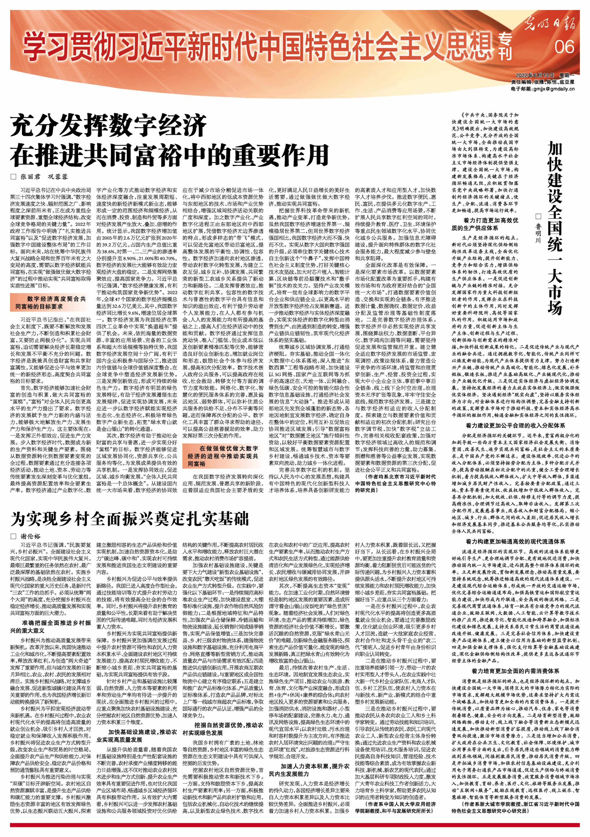 新闻网讯 6月13日,《光明日报》刊发我校张丽君、巩蓉蓉文章《充分发挥数字经济在推进共同富裕中的重要作用》,文章指出,站在统筹中华民族伟大复兴战略全局和世界百年未有之大变局的高度,需要以数字经济赋能共同富裕,在实现“做强做优做大数字经济”的过程中推动实现“共同富裕取得实质性进展”目标。全文内容如下:
